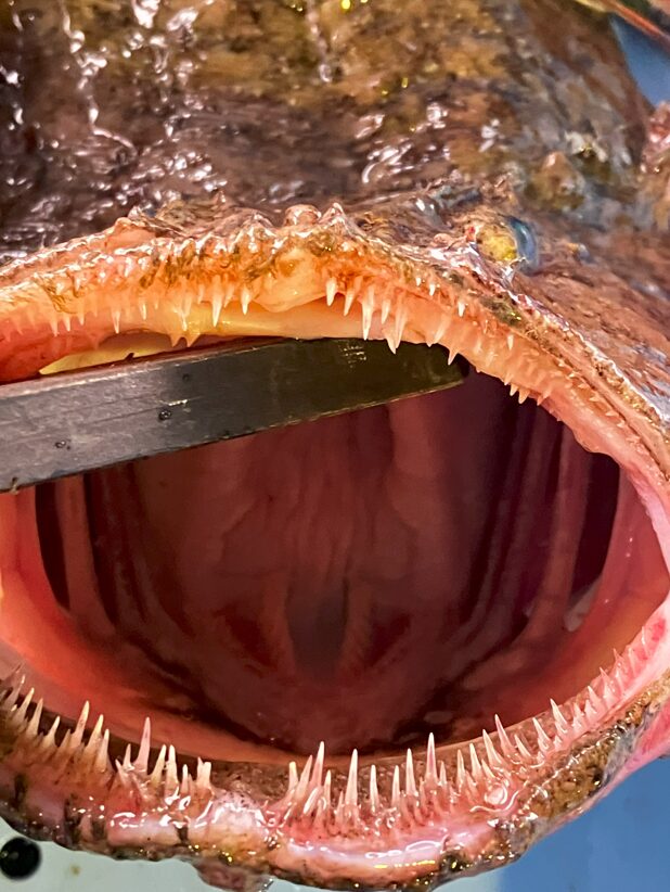 口の中は幾重にも鰓状になっており、飲み込むと奥へ奥へ入って行く構造はフィッシュイーターならでは。