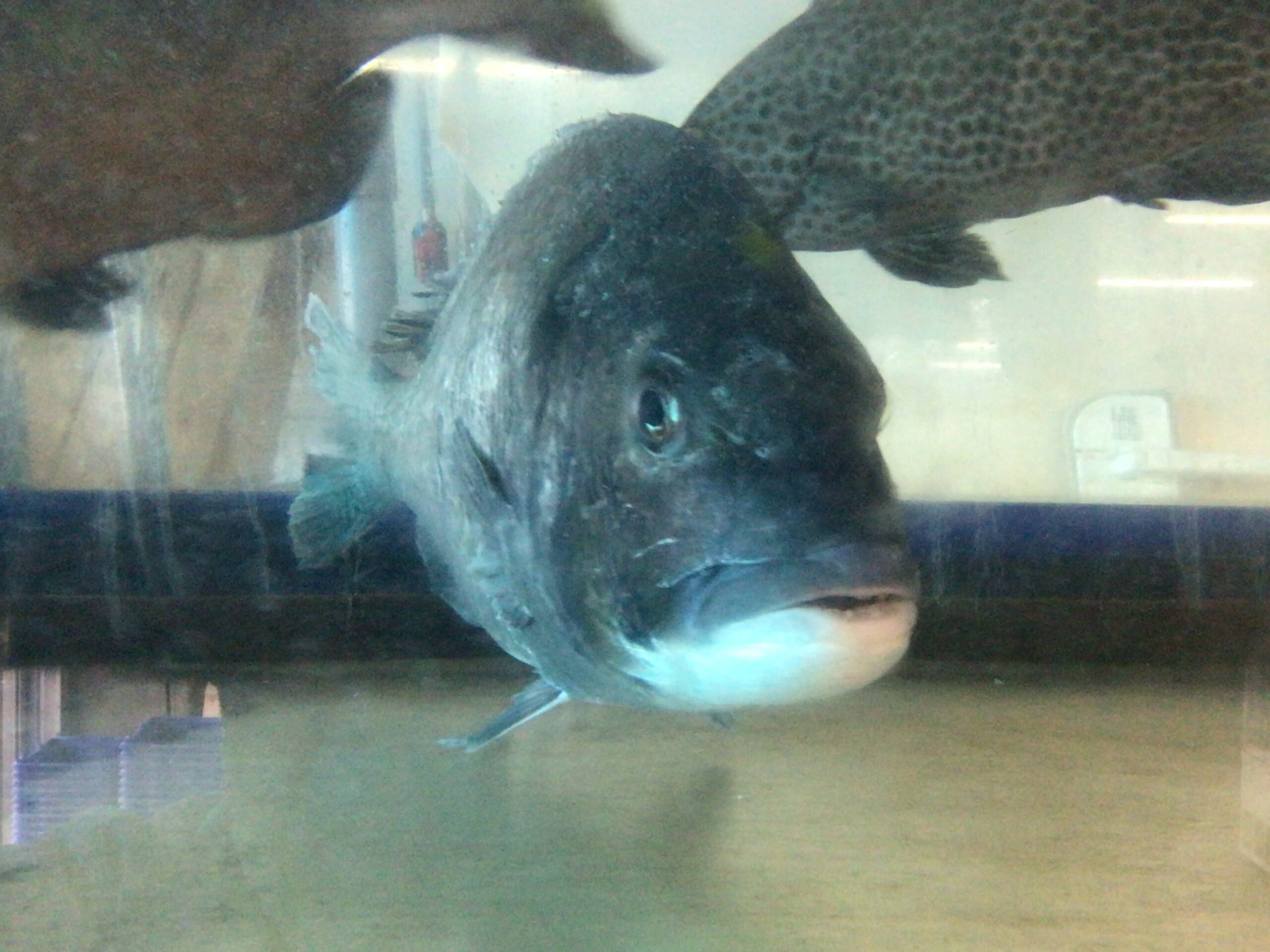 年なしチヌは迫力がある。これは頂き物の50㎝。 釣り考察 2024.02.23 頂き物の50センチの年なしチヌが、みなべ店水槽で泳いでいます。 黒鯛は大型になると、ほぼ例外なく黒っぽくなります。 綺麗なシルバー色は40㎝半ばまで。