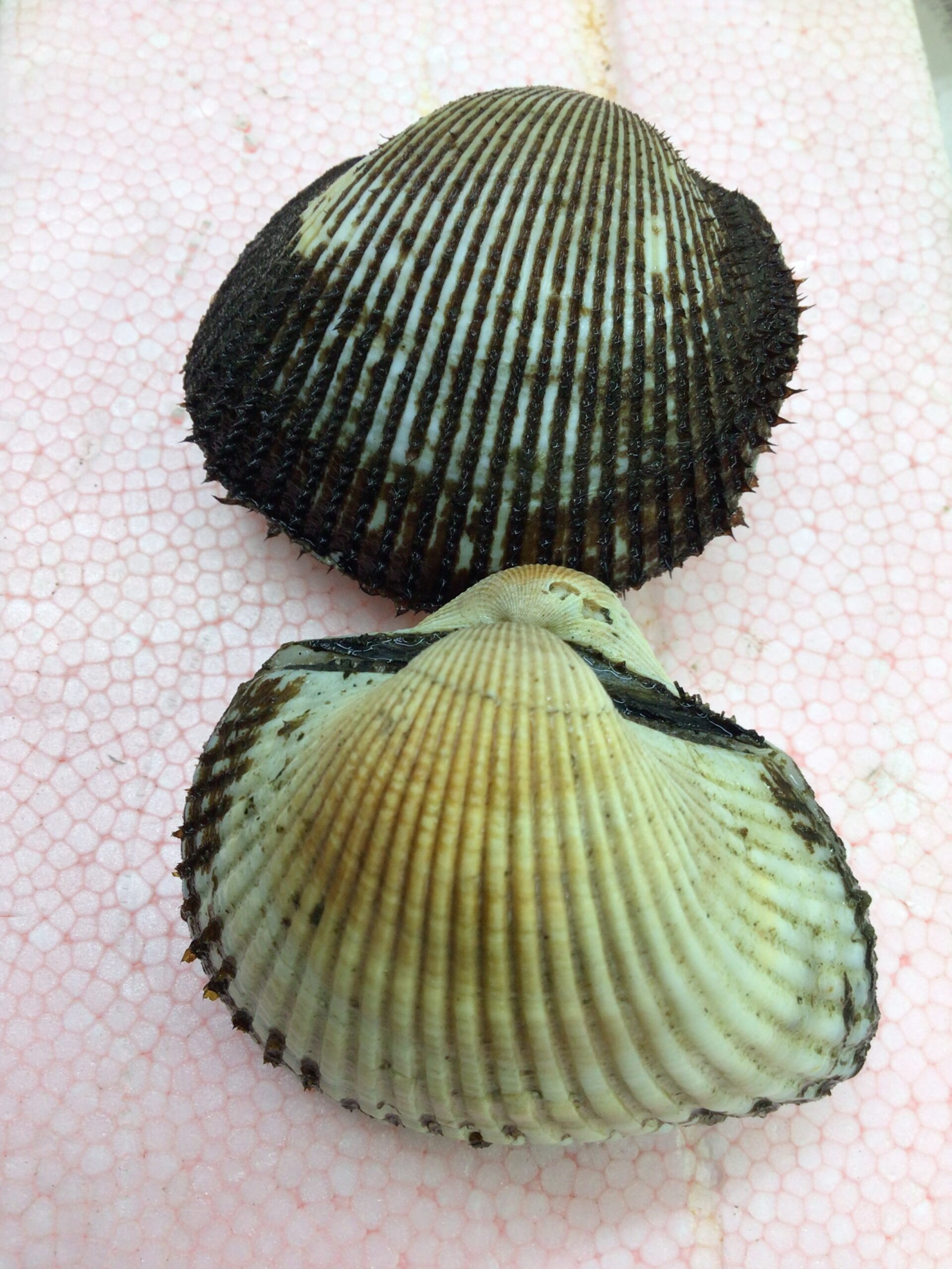 上の黒っぽいものが赤貝。