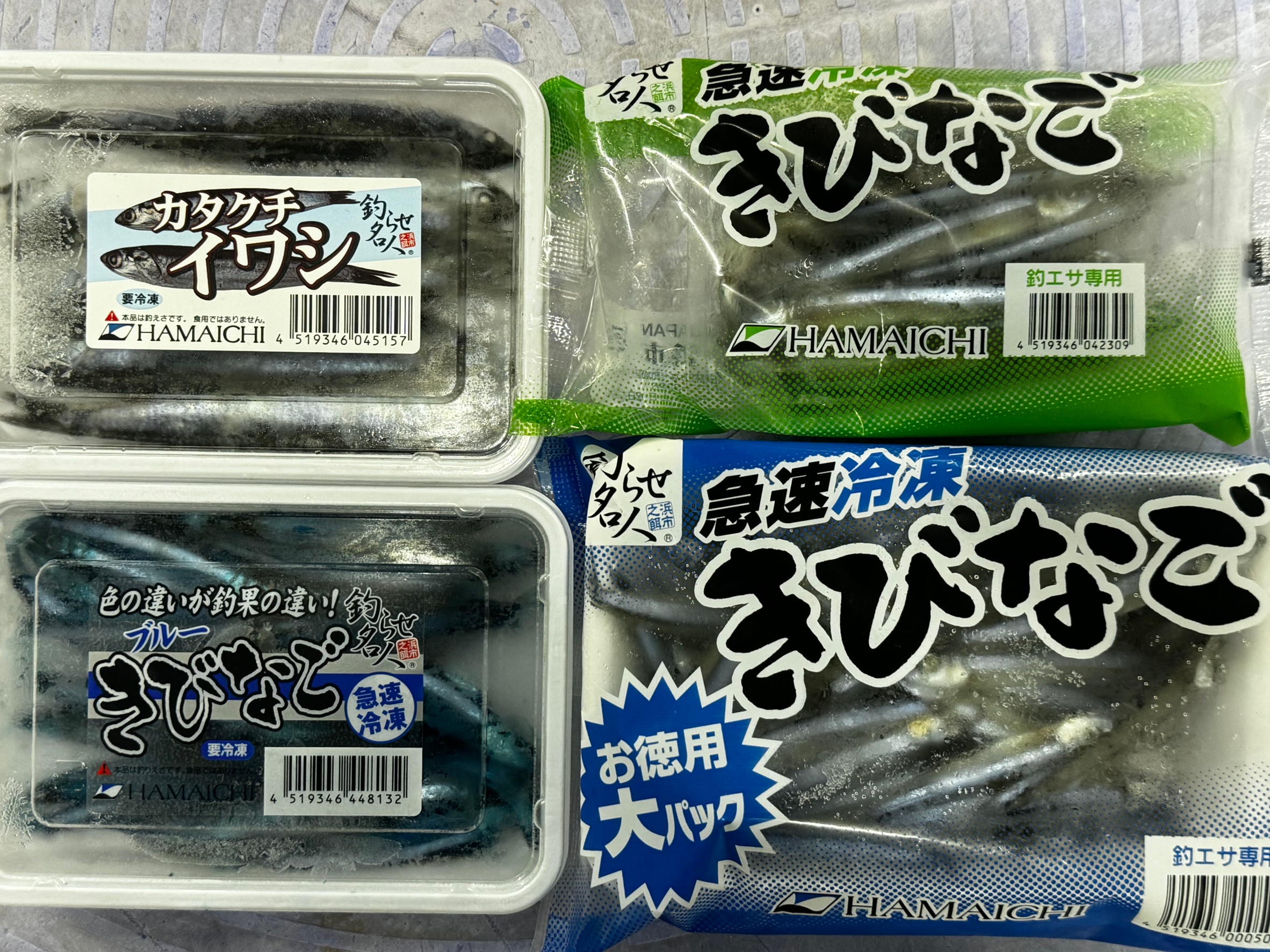 週末の夜釣り客動向。12時半から3時まで、渡船客で白浜店賑わいます。 釣具、エサ紹介 2024.06.16 ブッコミやスルスルスルルー釣り、夜釣りで人気が高いエサ。 オキアミメインでキビナゴやイワシ、スルメイカ、 ホタルイカ、イカピン、中エビ売れています。 もちろん夜間光る青イソメも人気が高い。