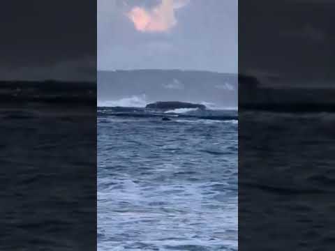 台風10号の影響で波が高くなってきてました。28日水曜日午前6時。