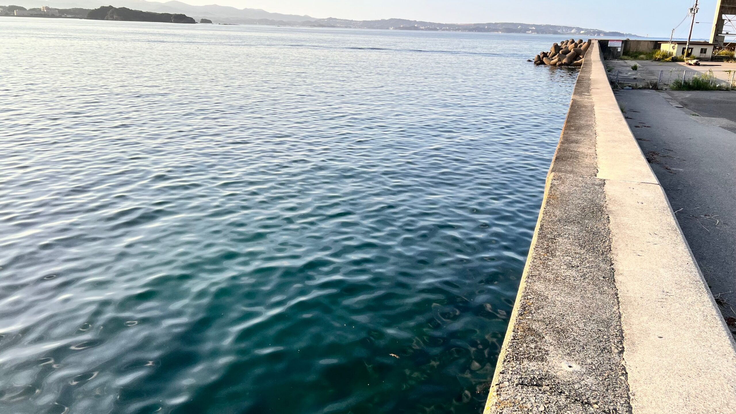 新子アオリイカがいっぱい泳いでいるみなべ堺堤防