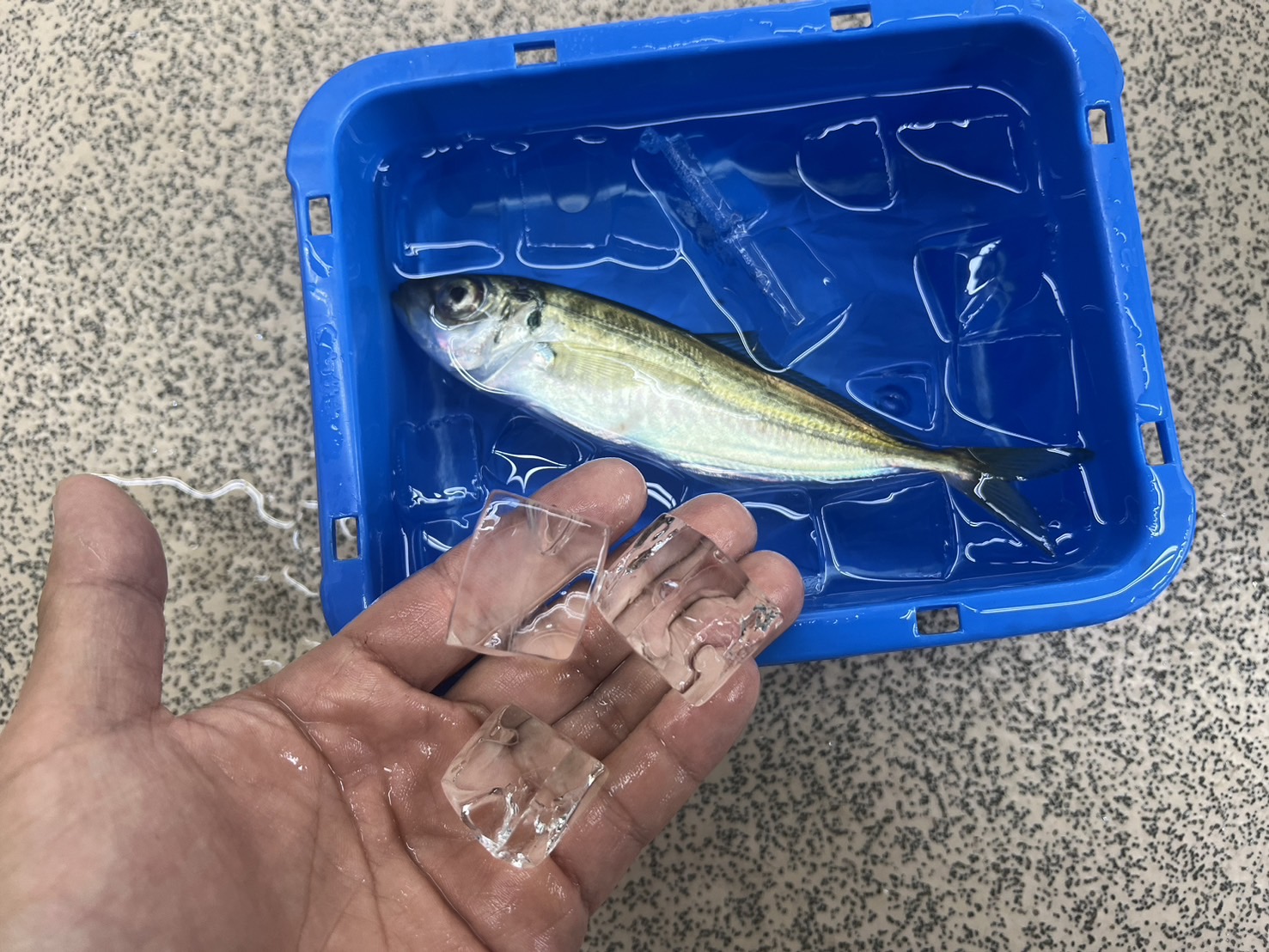後は海水と氷を混ぜた潮氷に魚を入れて持って帰るだけ!