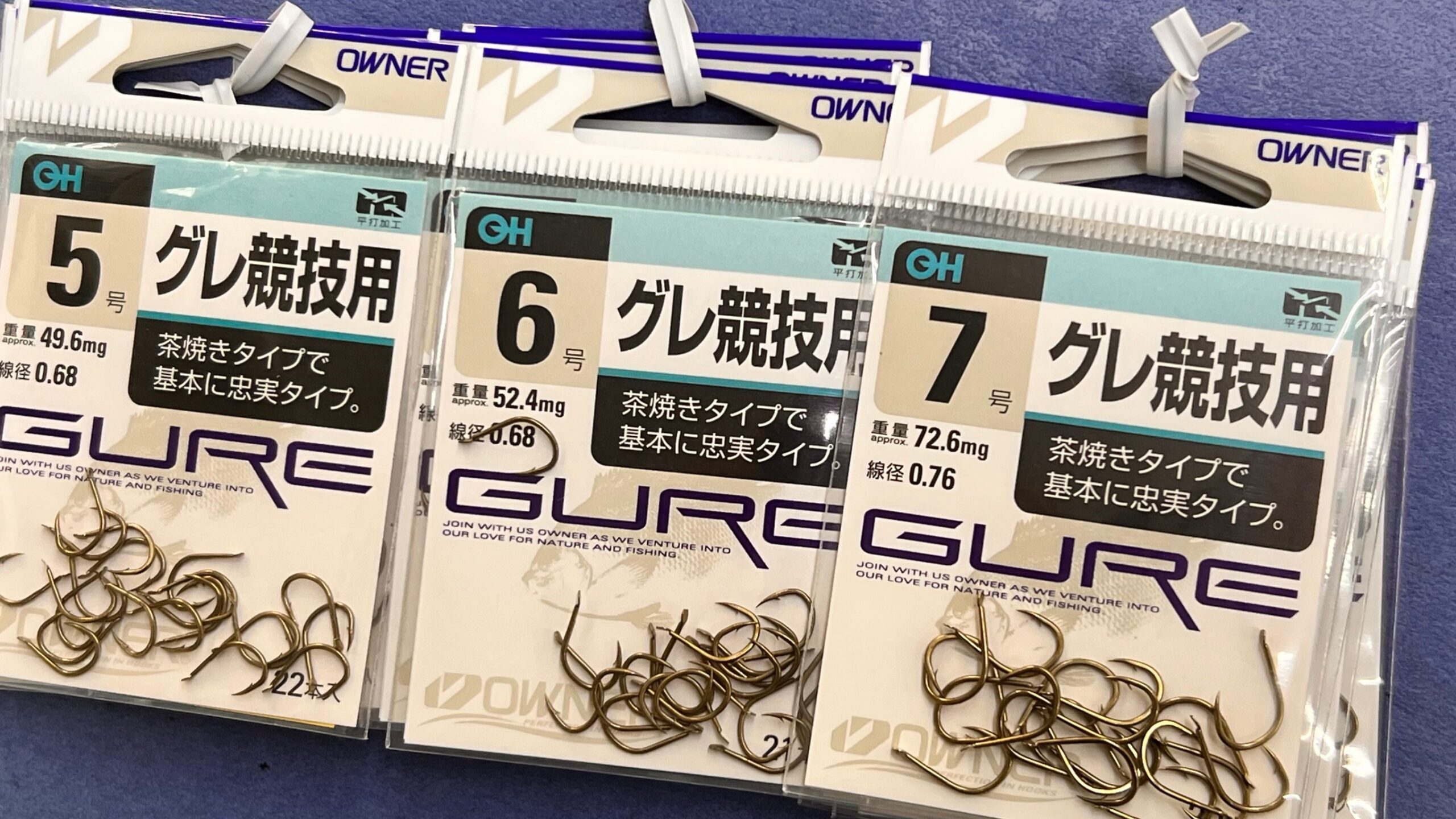 秋から初冬に絶対に売れるグレ鈎 商品入荷情報 2024.10.04 オーナー グレ競技用 ザグレ鈎という感じのベーシックな鈎です。 297円で20本以上入っているので、コスパ良し。 ラインナップは3号~7号です。