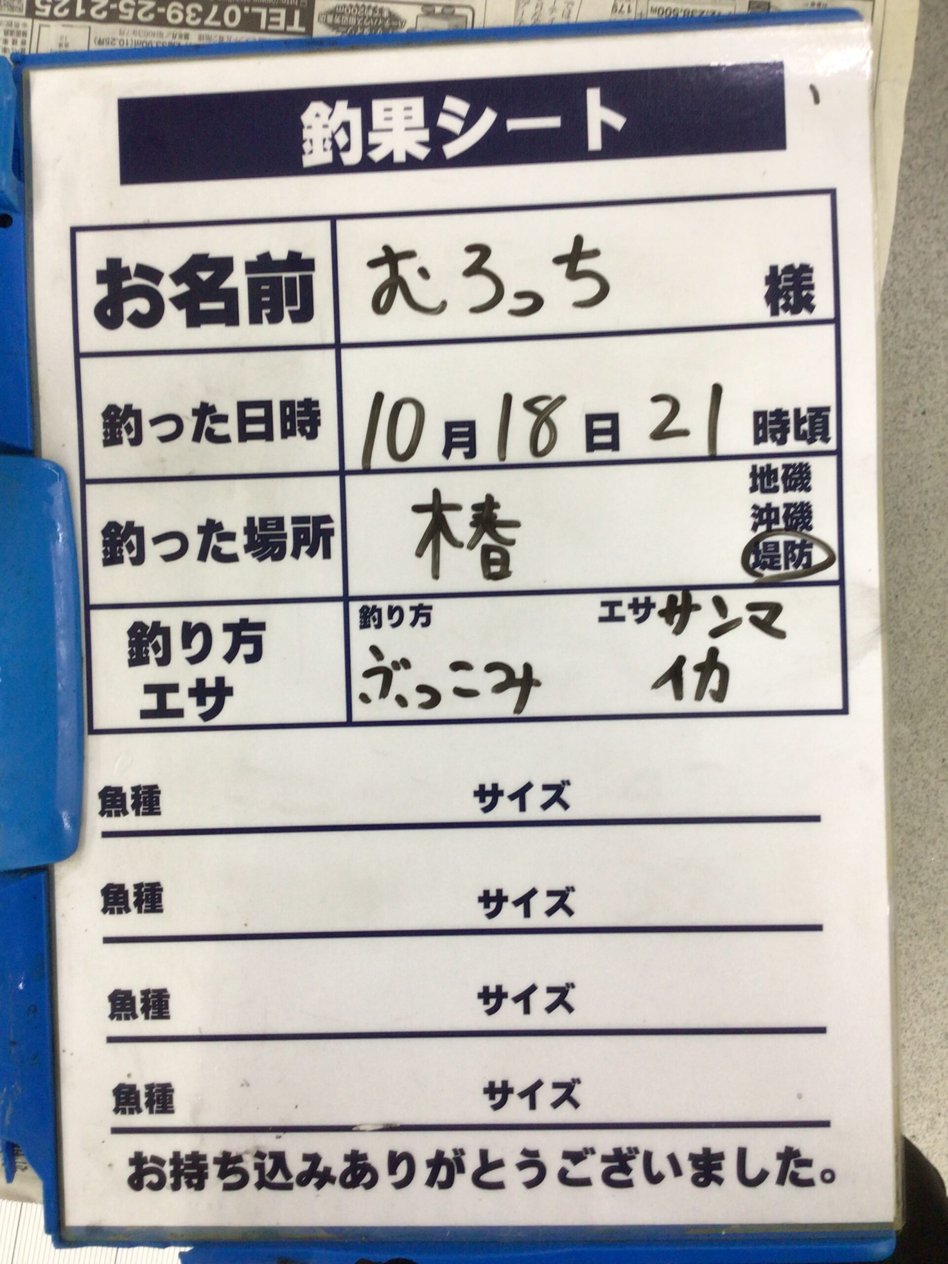 10/18(金)椿堤防・ぶっこみ釣りでコロダイ、オオモンハタの持ち込み釣果。