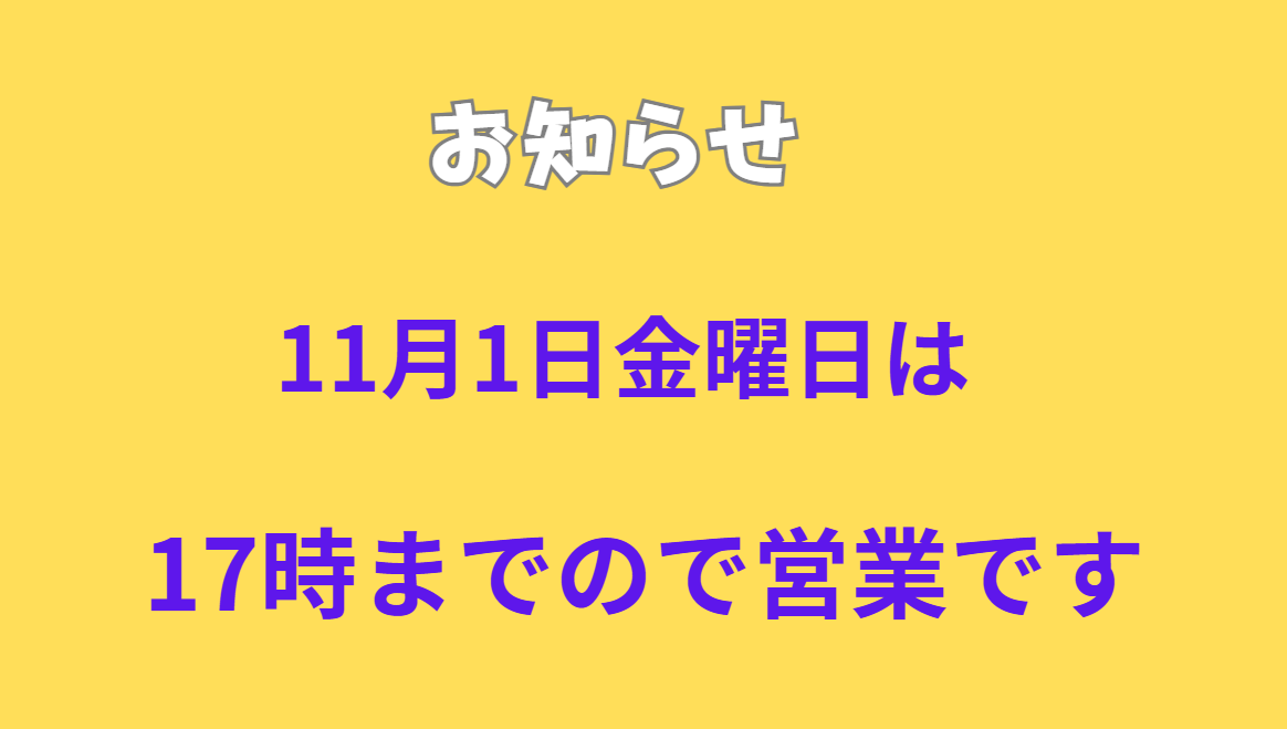 本日は17時まで営業しております。