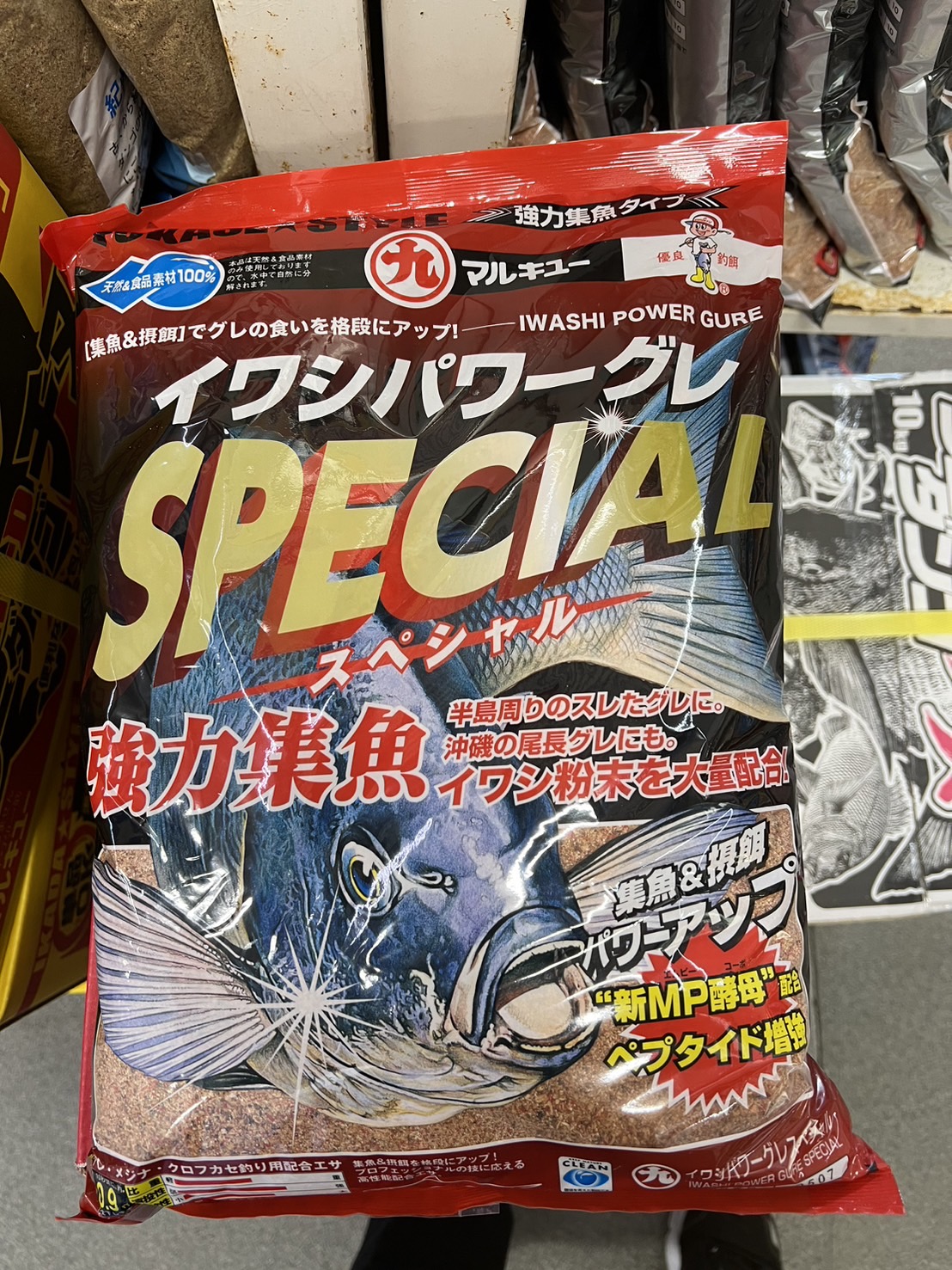 - 食い渋り時: オキアミ6㎏とV9徳用1袋にイワシパワーグレSP1袋を追加します。