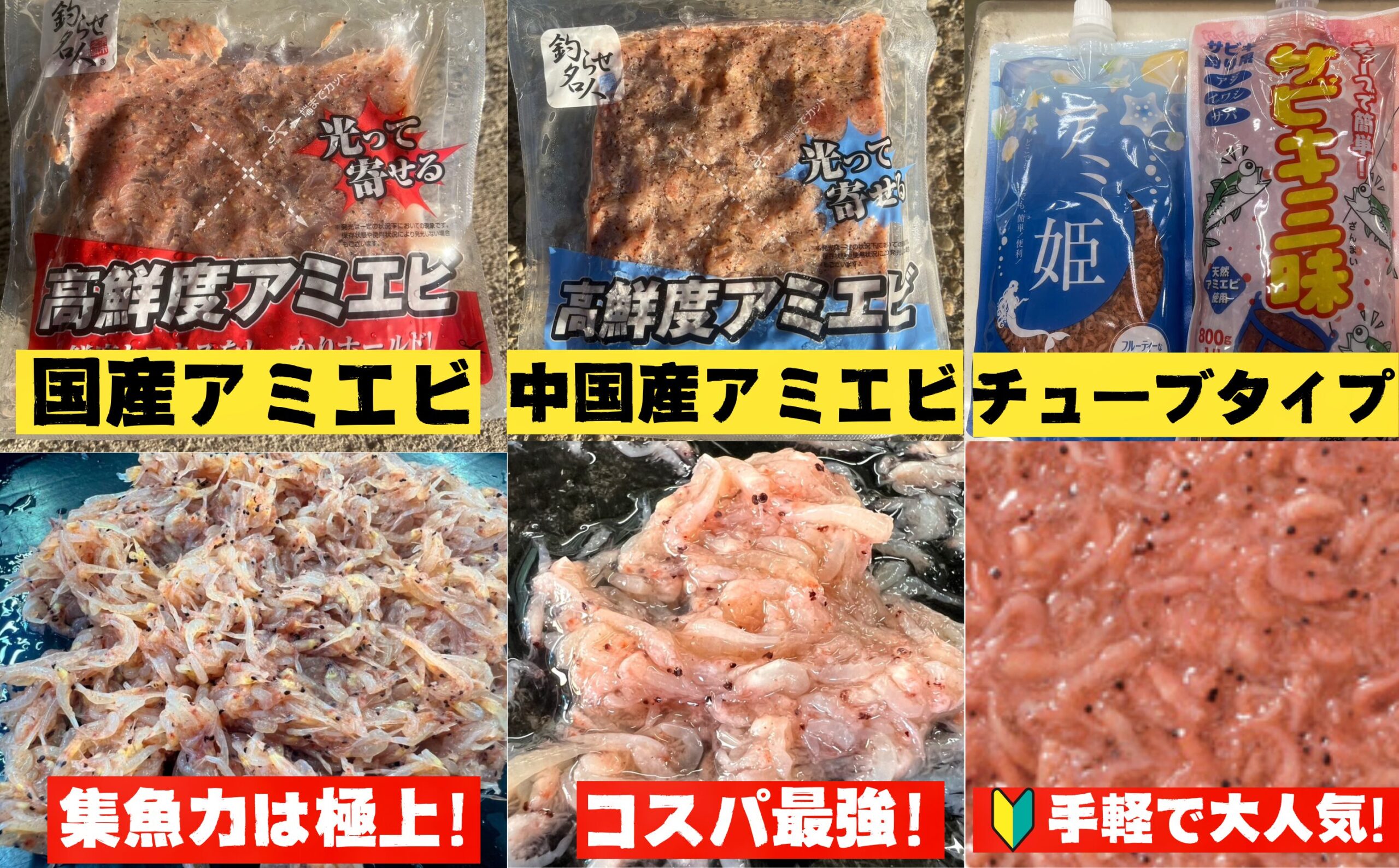 | 項目 | 【国産アミエビ 2kg】 | 【中国産アミエビ 2kg】 | 【チューブアミエビ】 |