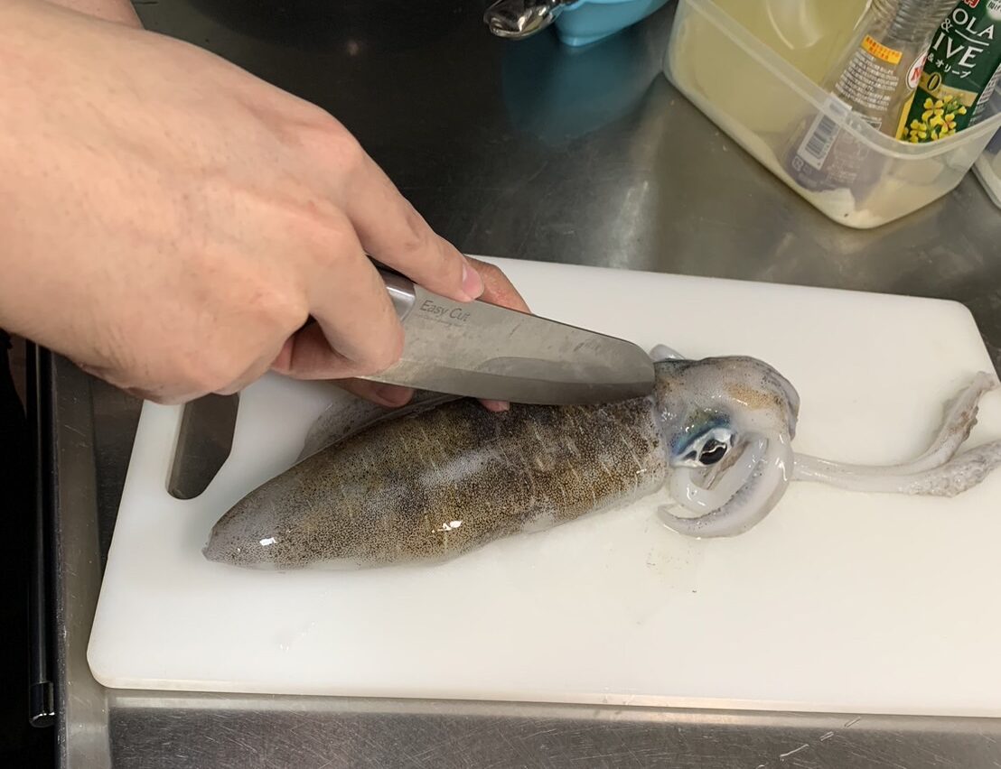 不安でしたが「アオリイカは捌くの簡単だからやってみなよ!」という社長の言葉を信じて、捌いてみる事にしました。