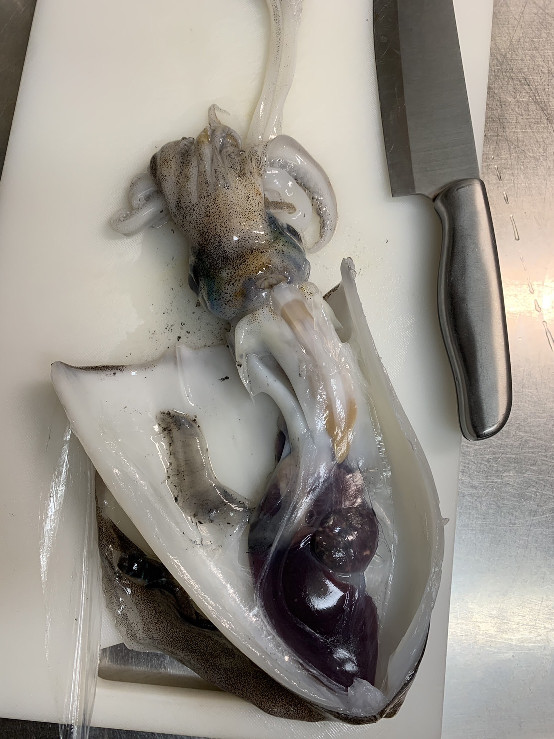 なんとか開けました。イカの内部ってこんななってるんや….なんか思ってたよりシンプルかも。