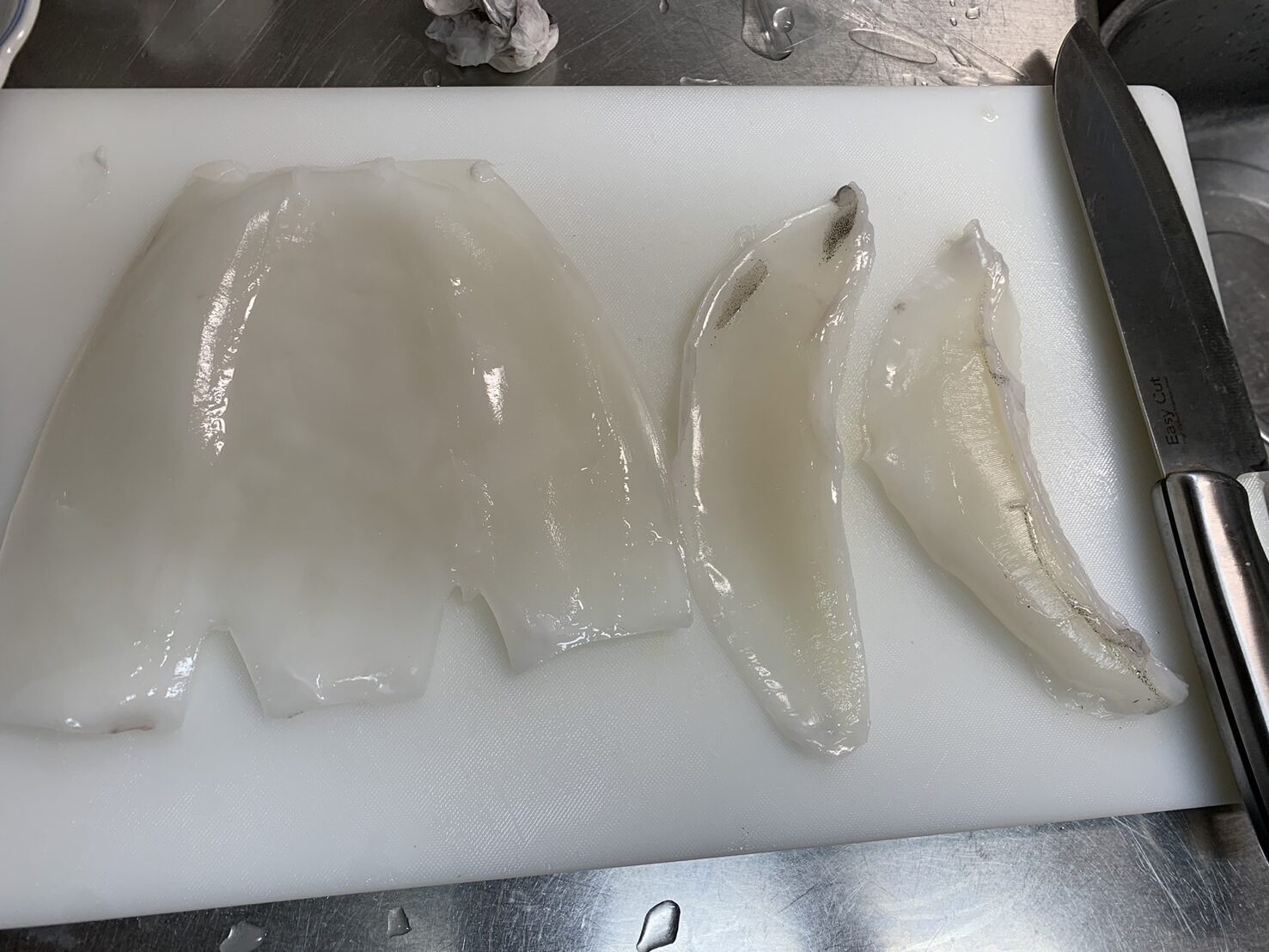 こんな感じに分けることが出来ました。胴体、エンペラ(耳の部分)、ゲソです。