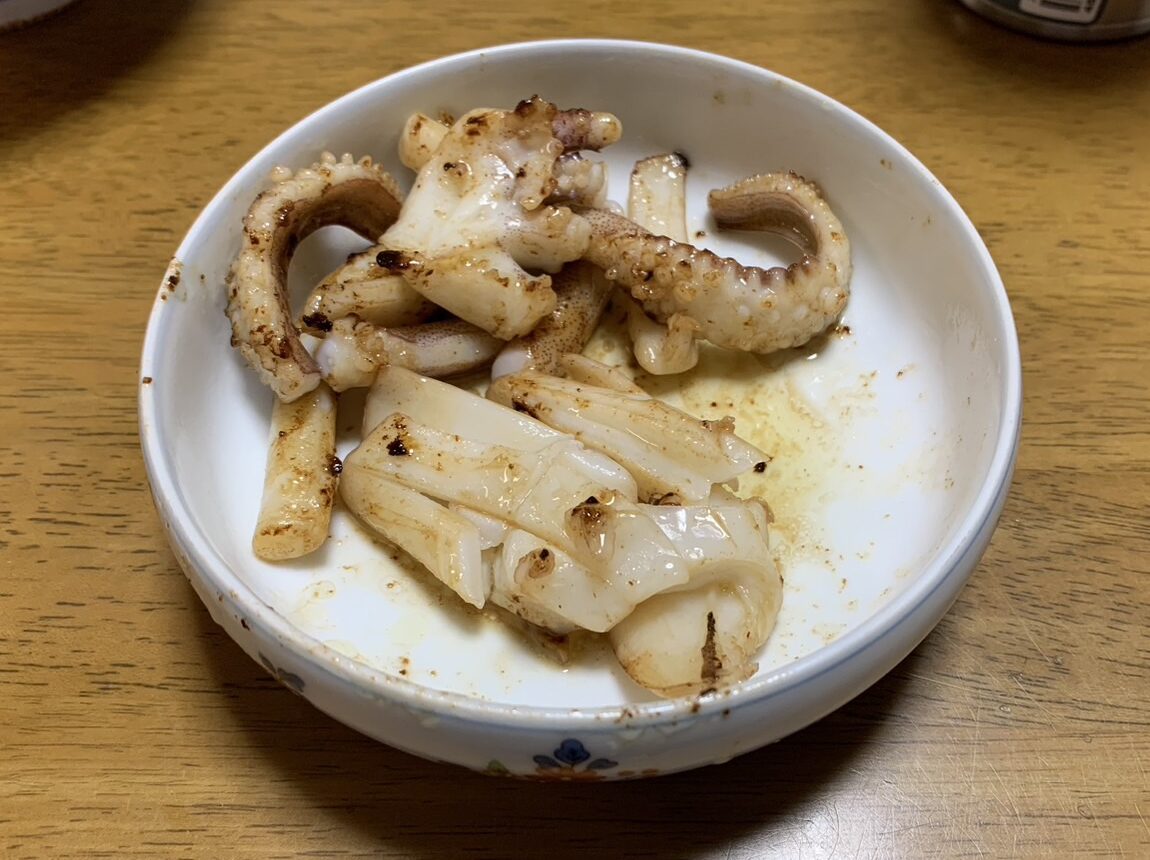 続いてエンペラとゲソのバター醤油炒めです。