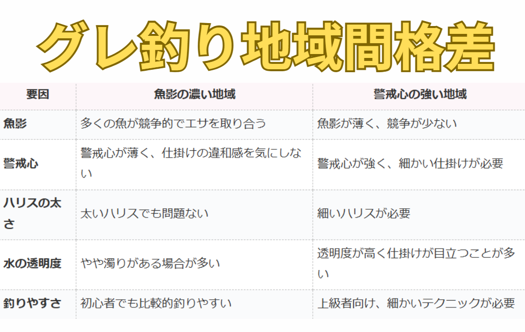 | 要因 | 魚影の濃い地域 | 警戒心の強い地域 |