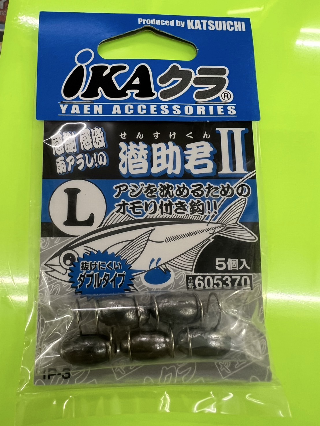 今回おすすめするのは「潜助君Ⅱ」のLサイズ。これにより鯵が安定して沈みます。 - オモリを取り付ける