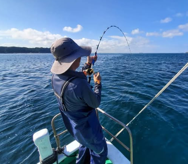 大物がエサに食いついたら、いよいよファイトの始まり。電動リールを使うので、長時間の引きでも安心です。