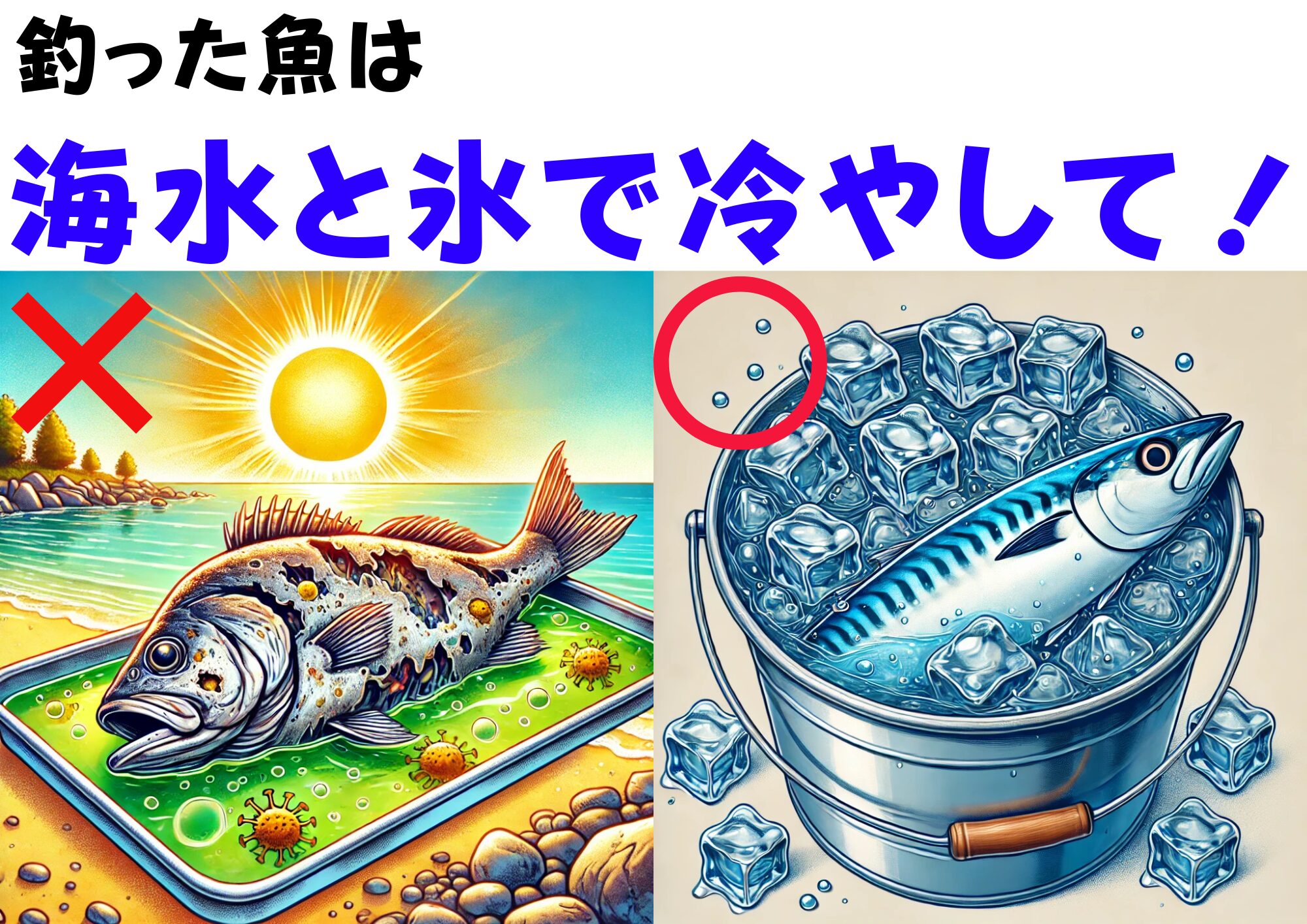 - 対策: 釣った魚はすぐに濡れたタオルや遮光ネットで覆い、日陰に置くようにしましょう。