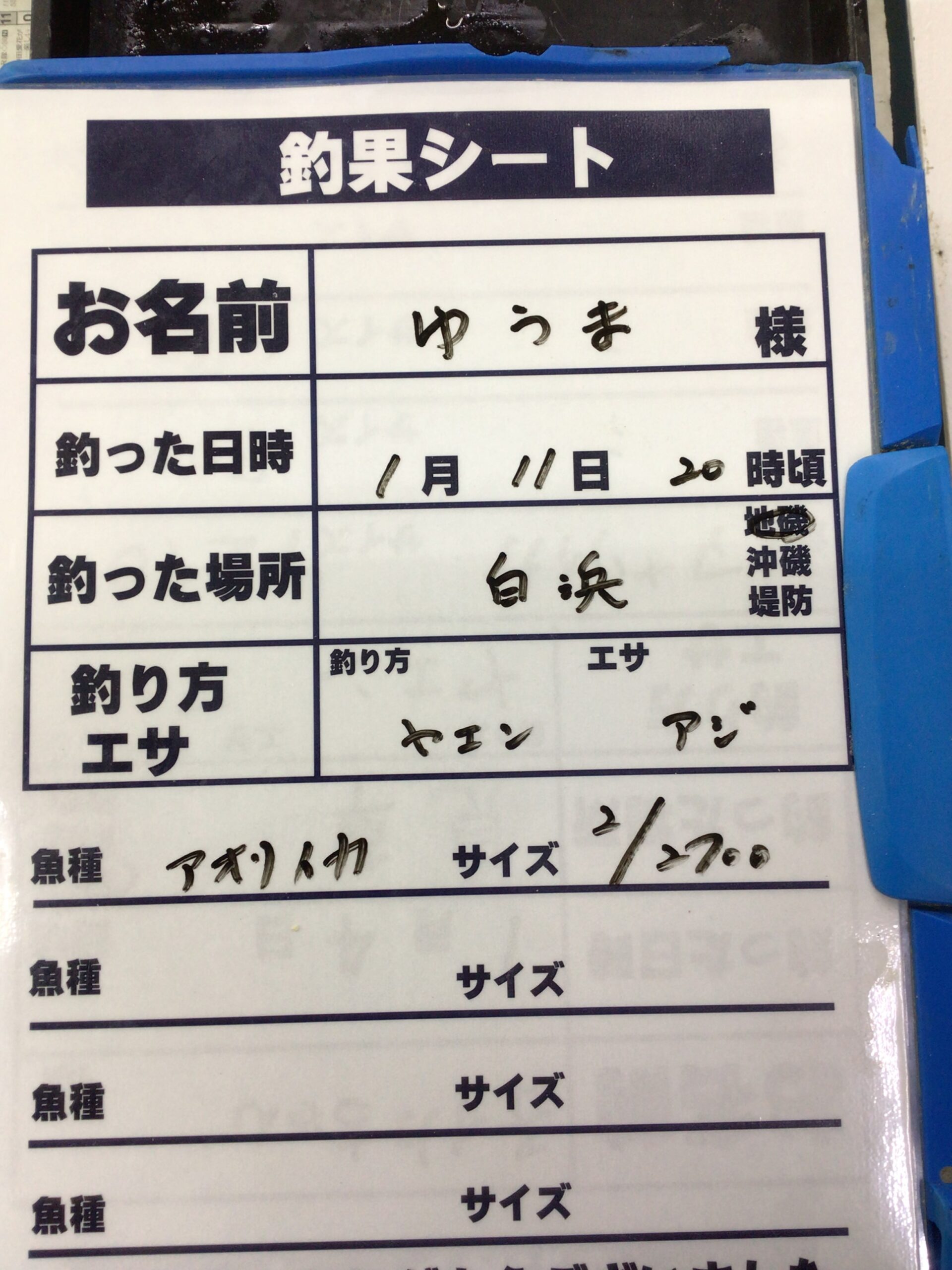 1/11(土) 白浜地磯にてアオリイカの持ち込み釣果。