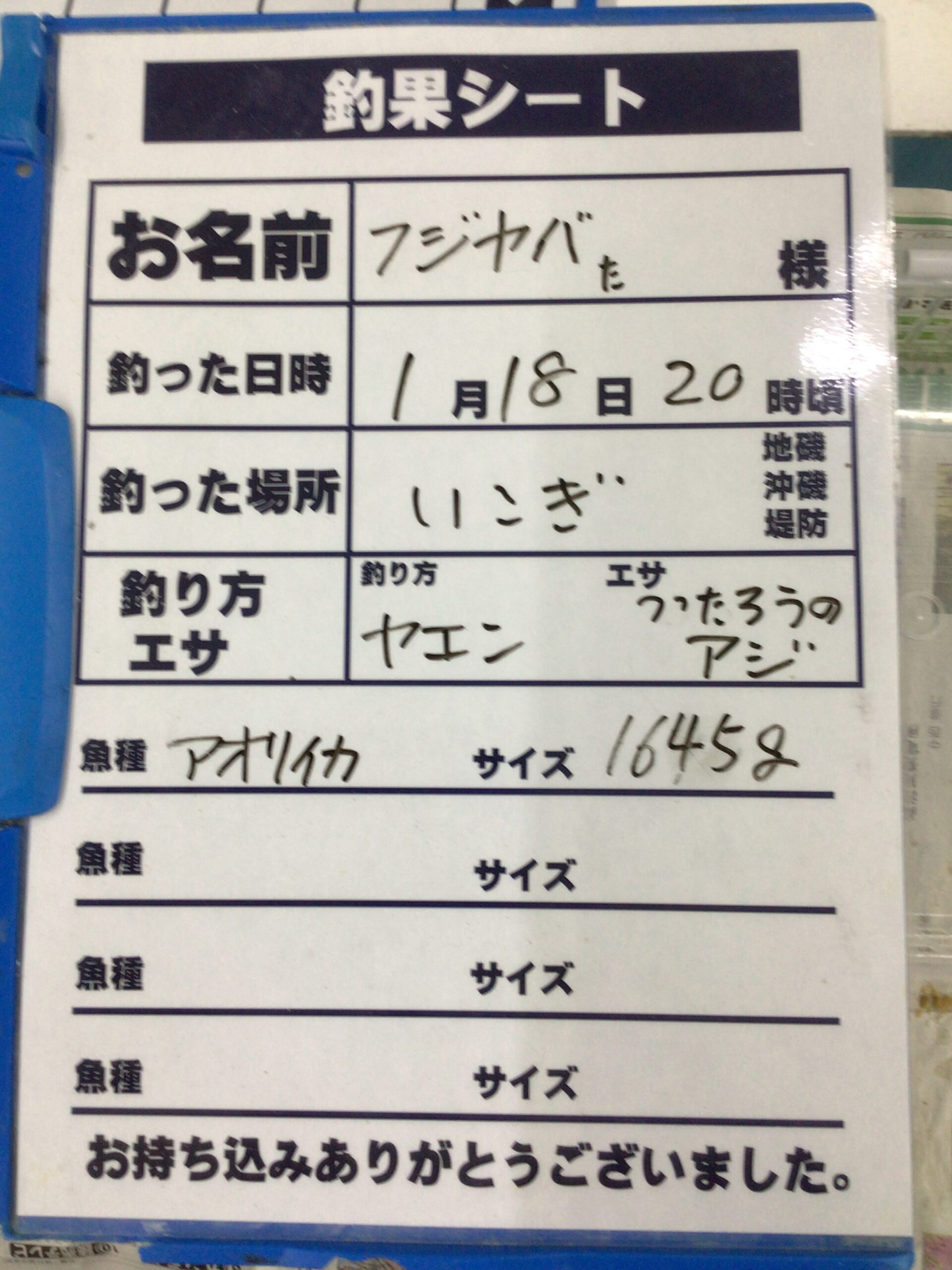 1/18 いこぎにてアオリイカ1645gの釣果 ヤエン釣り