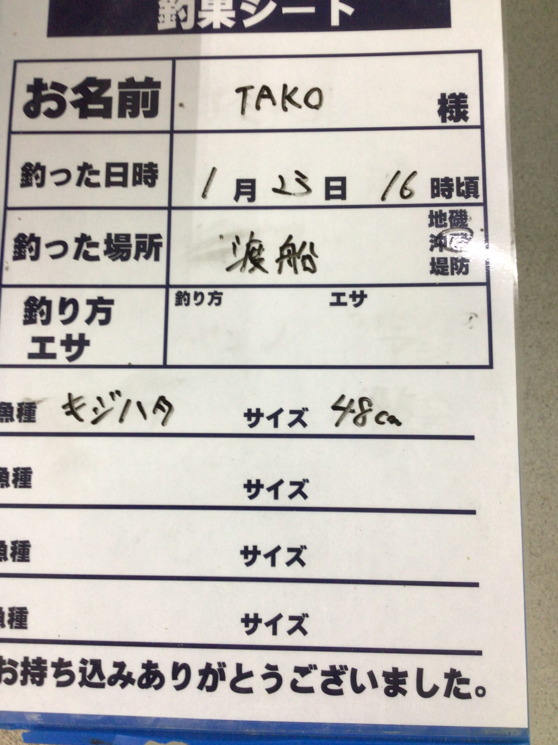 1/23 キジハタ48Cm釣果!! 渡船にて