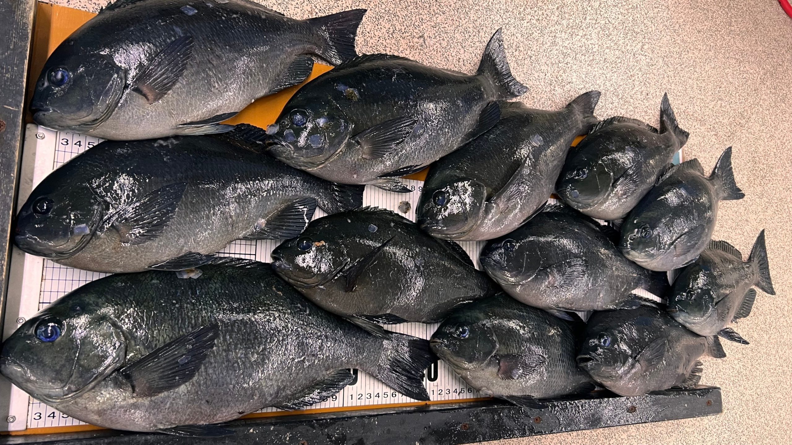1/25藤井様 白浜地磯でグレ34~43㎝ 12枚【大漁賞で500円クーポン券進呈】 グレ・チヌ、鯛系の釣果 2025.01.25 アオサで釣ったそうです。 グレ34cm~43cm 12枚の釣果 白浜町地磯にて
