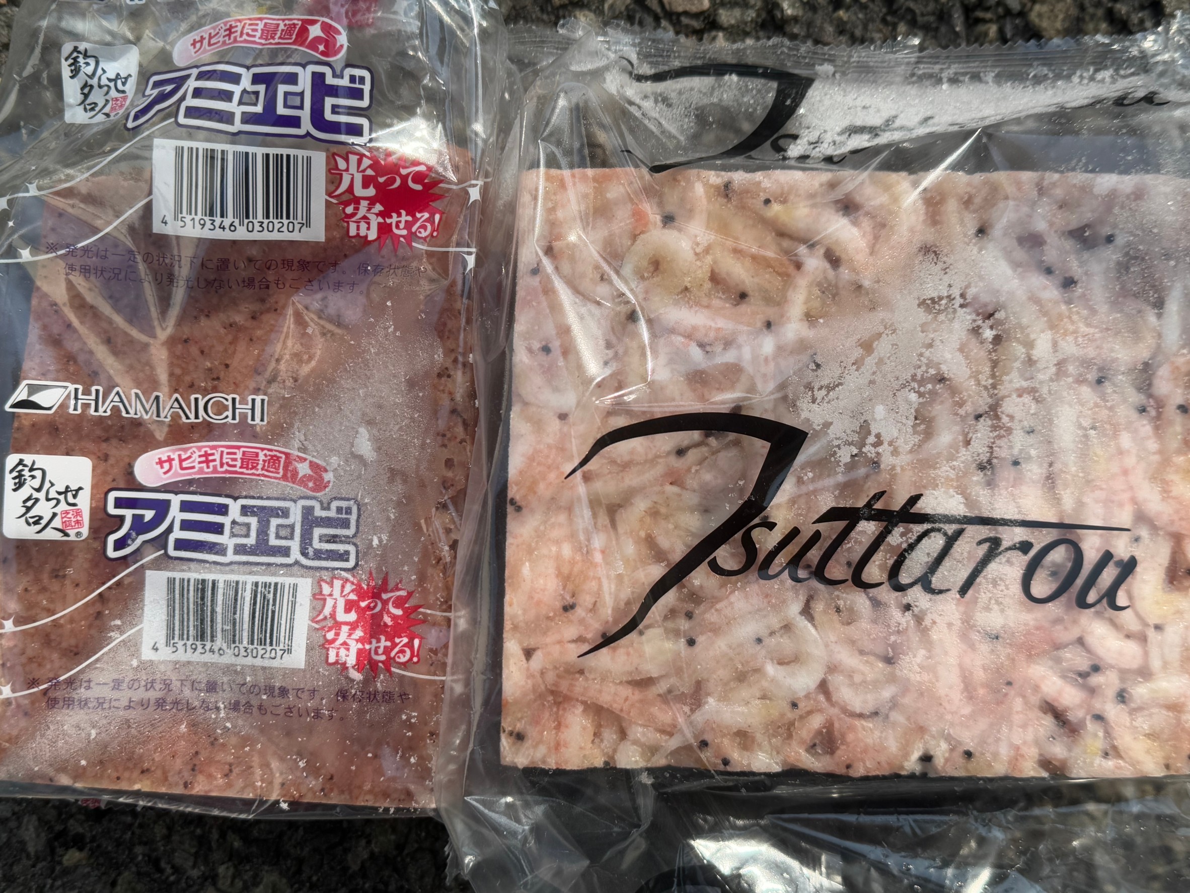 初心者の方は、アミエビは小魚を集める撒き餌、オキアミは少し大きな魚のエサと覚えるといいですね!