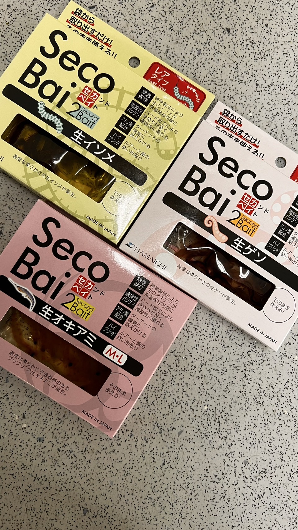 擬餌エサでもない、活エサでもない「新商品 生エサ・セカンドベイト」入荷 商品入荷情報 2025.02.07 ルアーとエサのハイブリットの釣り。 ジグヘッドにつけて根魚狙いに使えます。 現在3アイテムですが、順次増えてきます。