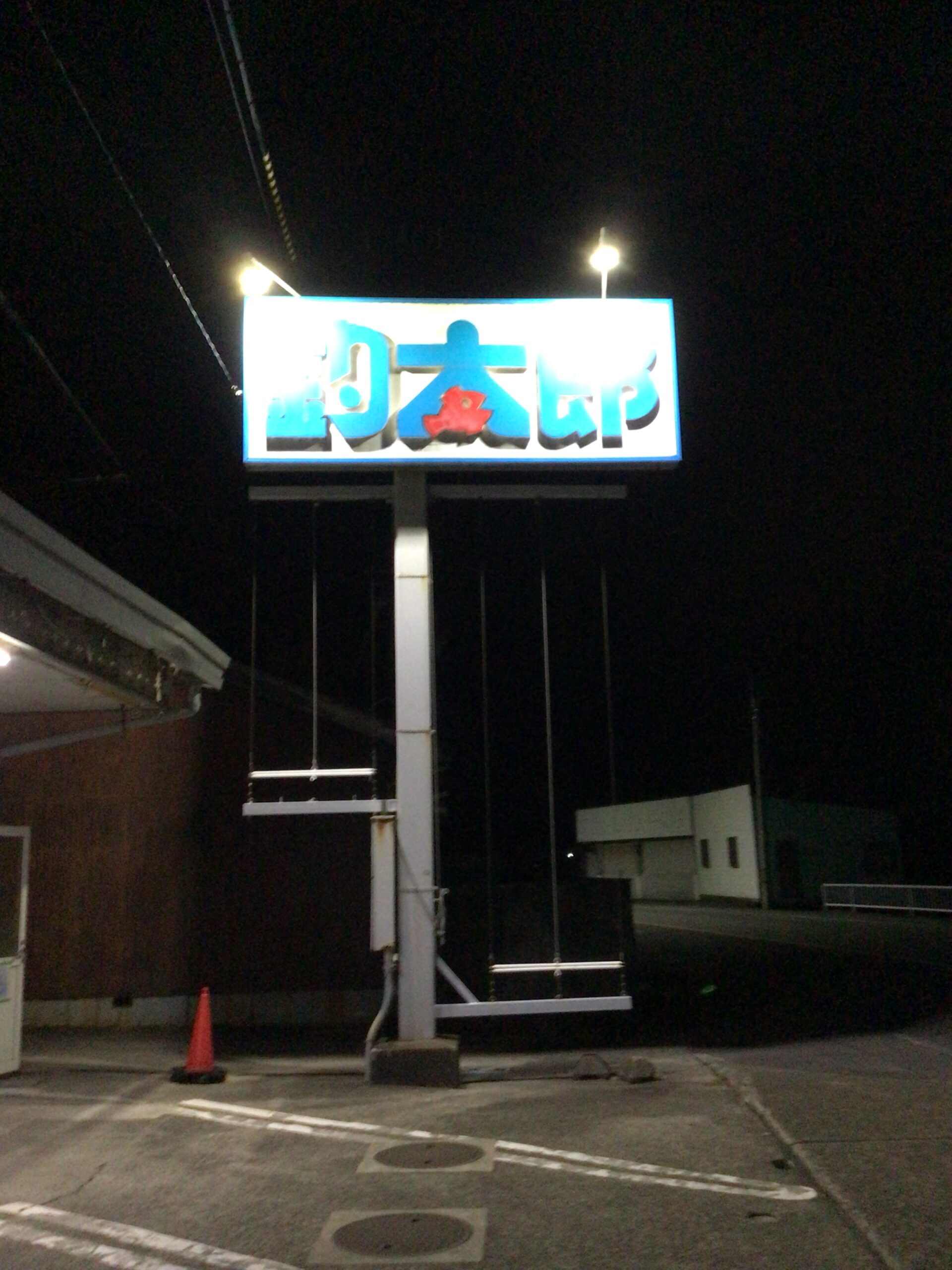 nightversionですがこの看板が目印です。釣太郎って知ってる?と聞いて「昔、夏に浮き輪吊ってたとこやろ」と返事が来ればなかなかの通です。