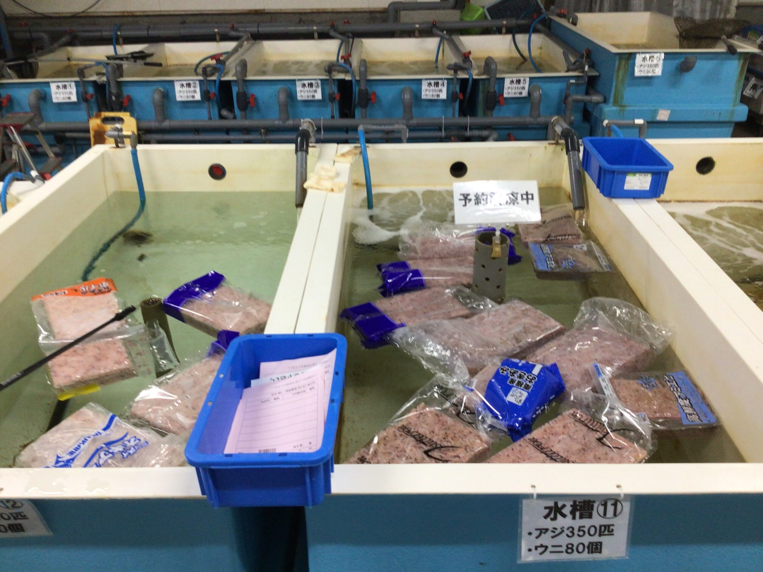 11月~3月頃までの釣太郎の風物詩 オキアミの解凍の様子。最盛期になると予約解凍であふれかえるほどの量になります。次の日の釣り人の多さ・オキアミの種類 アミエビの有無等を解凍量で情報をいち早くGET。解凍具合は全解凍と半解凍がございます。全解凍は文字通り完全に溶かします。半解凍はスコップが入る具合に解凍します。予約外用にて解凍したものもご用意しておりますが状況によりない場合がございますので予約をおすすめ致します。予約方法は2種類ありホームページからの予約と電話での予約がございますがおすすめの方はホームページの方が断然便利。値段が明記されており特典で45㍑容量のビニール袋が付いてくる(※条件付き)さらに運が良ければ300円クーポンが当たるかも!?あふれかえる解凍を見たいと思う方は20時頃釣太郎みなべ店にGO※天候によりご期待に添えれない場合がございます。