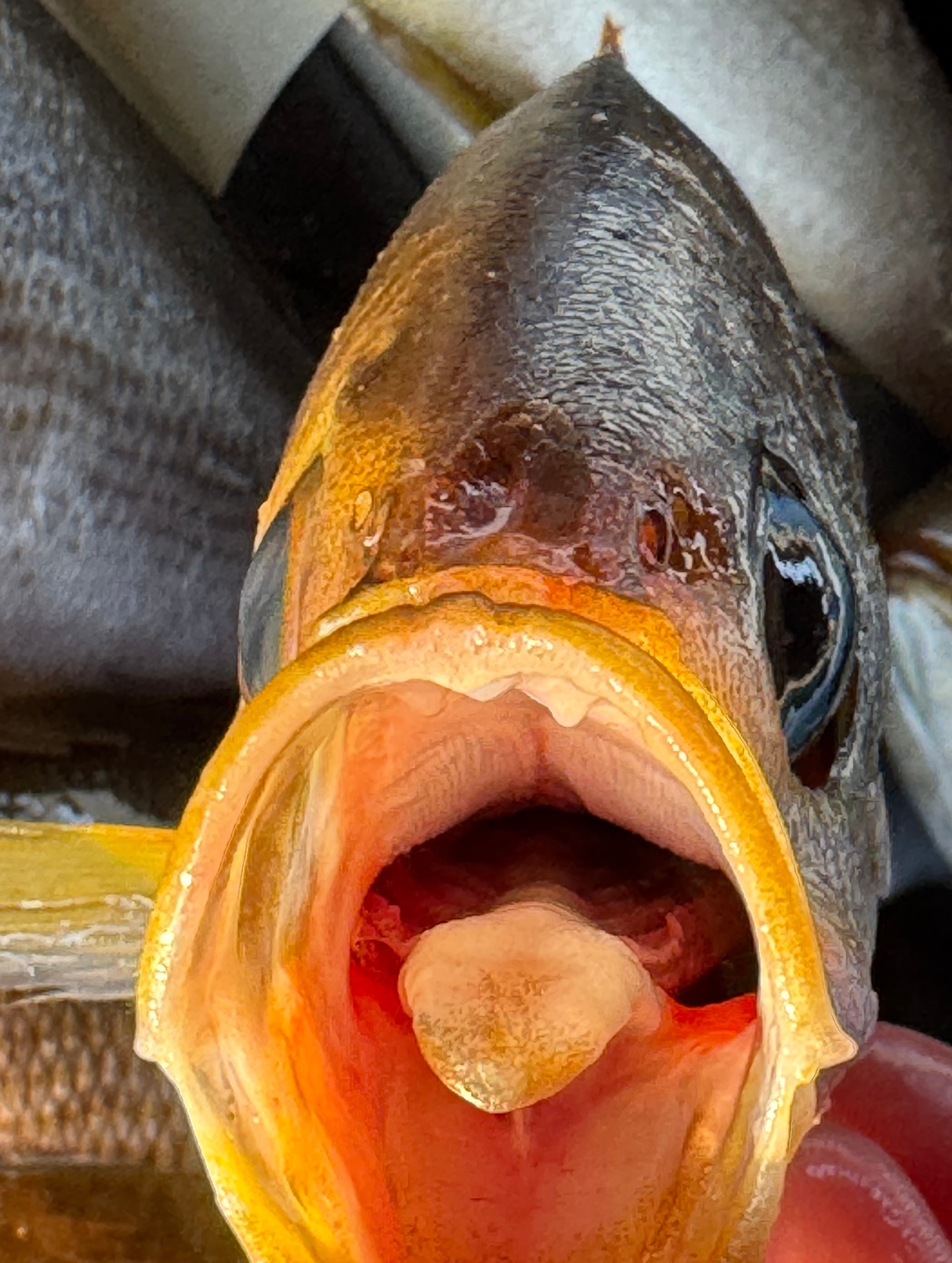 イサギの口の奥にある、舌のように見える白っぽい組織。