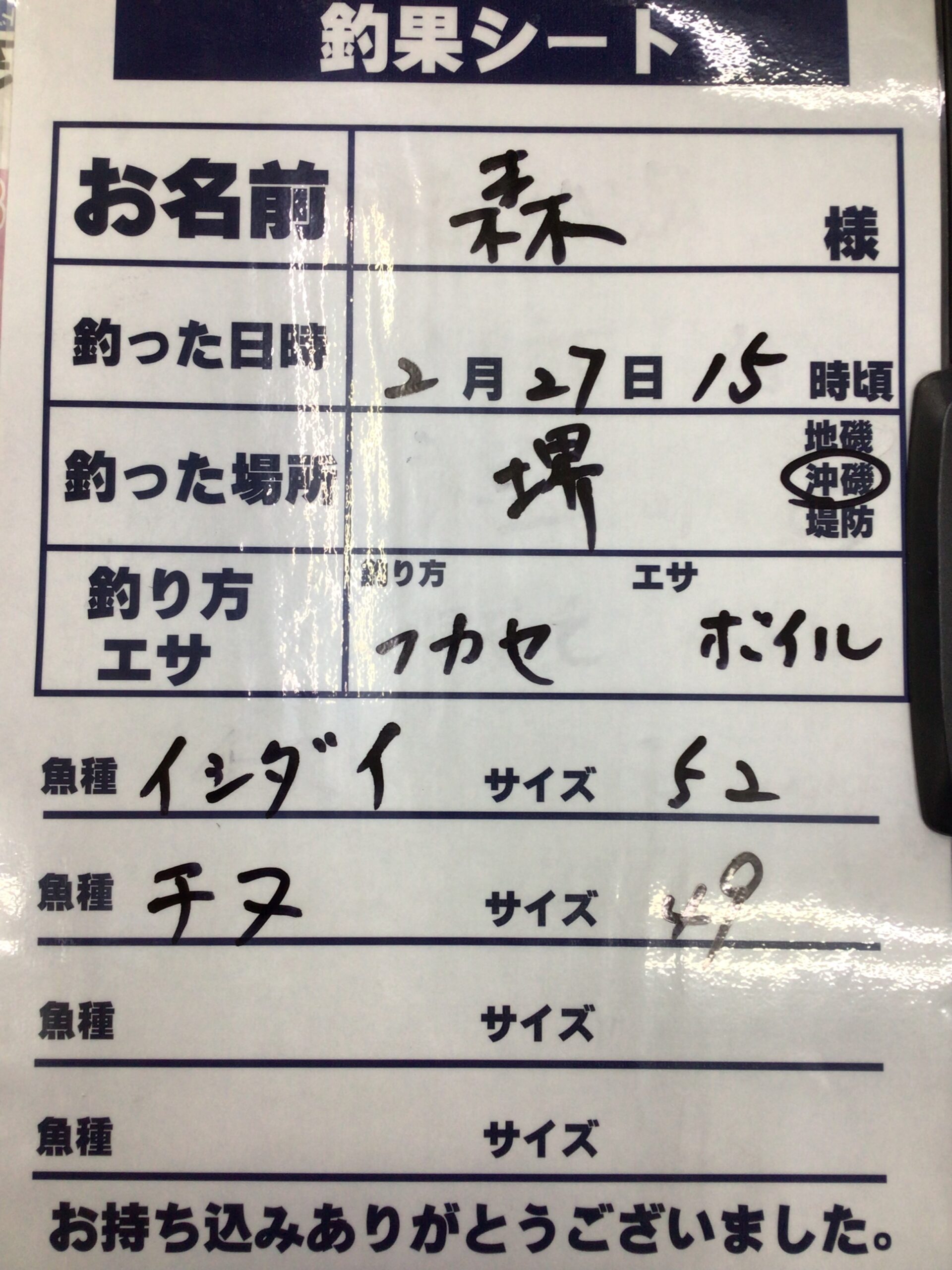 2/27(木)堺の沖磯でイシダイ52㎝,チヌ49㎝ フカセにて
