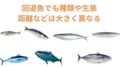 サンマ、サバ、ブリ、イワシ、カツオ、マグロ、アジは同じ回遊魚だが、大きく異なる理由、特徴と泳ぐ距離説明。