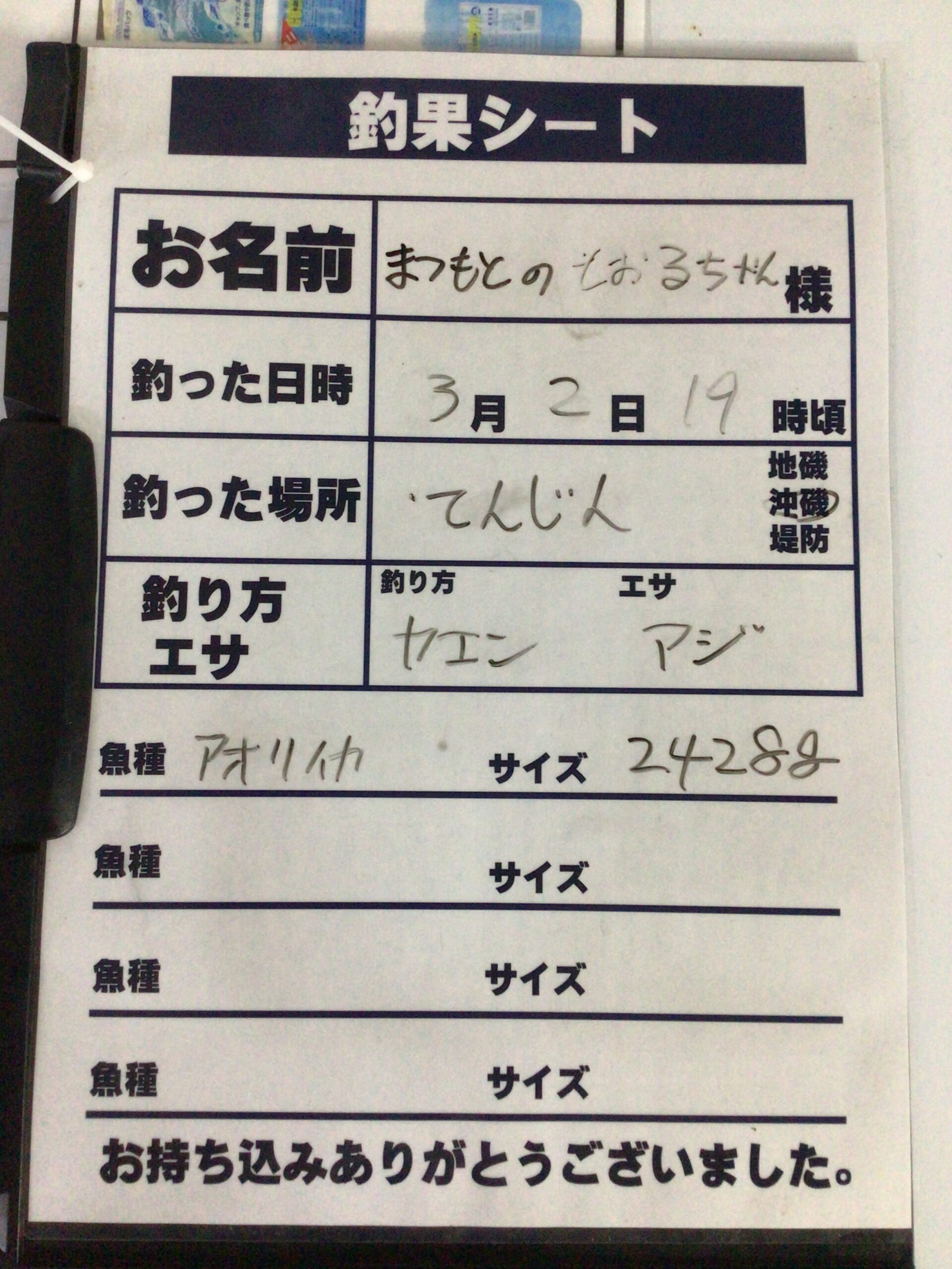 3/2天神崎沖磯にてアオリイカ2428gの釣果。ヤエン釣り。【☆2kg超で1000円クーポン進呈】
