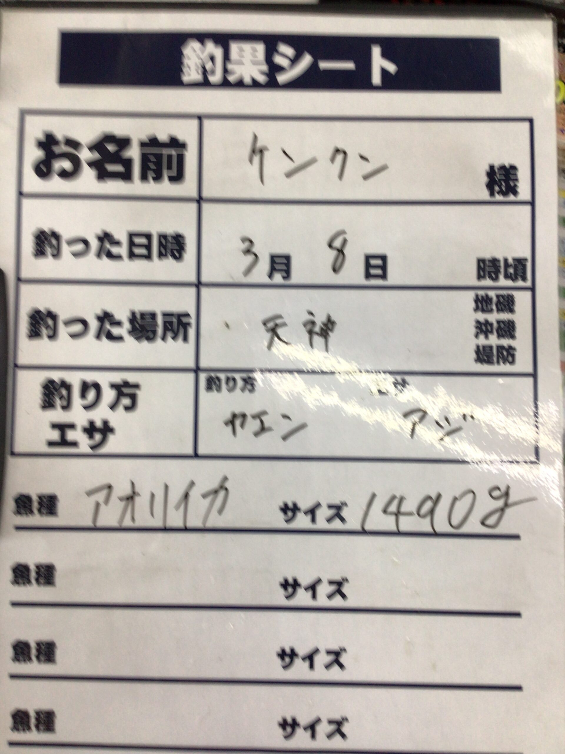 3/7 串本・潮岬にてグレ41㎝~32㎝ 11匹の釣果!坂口様大漁賞おめでとうございます!
