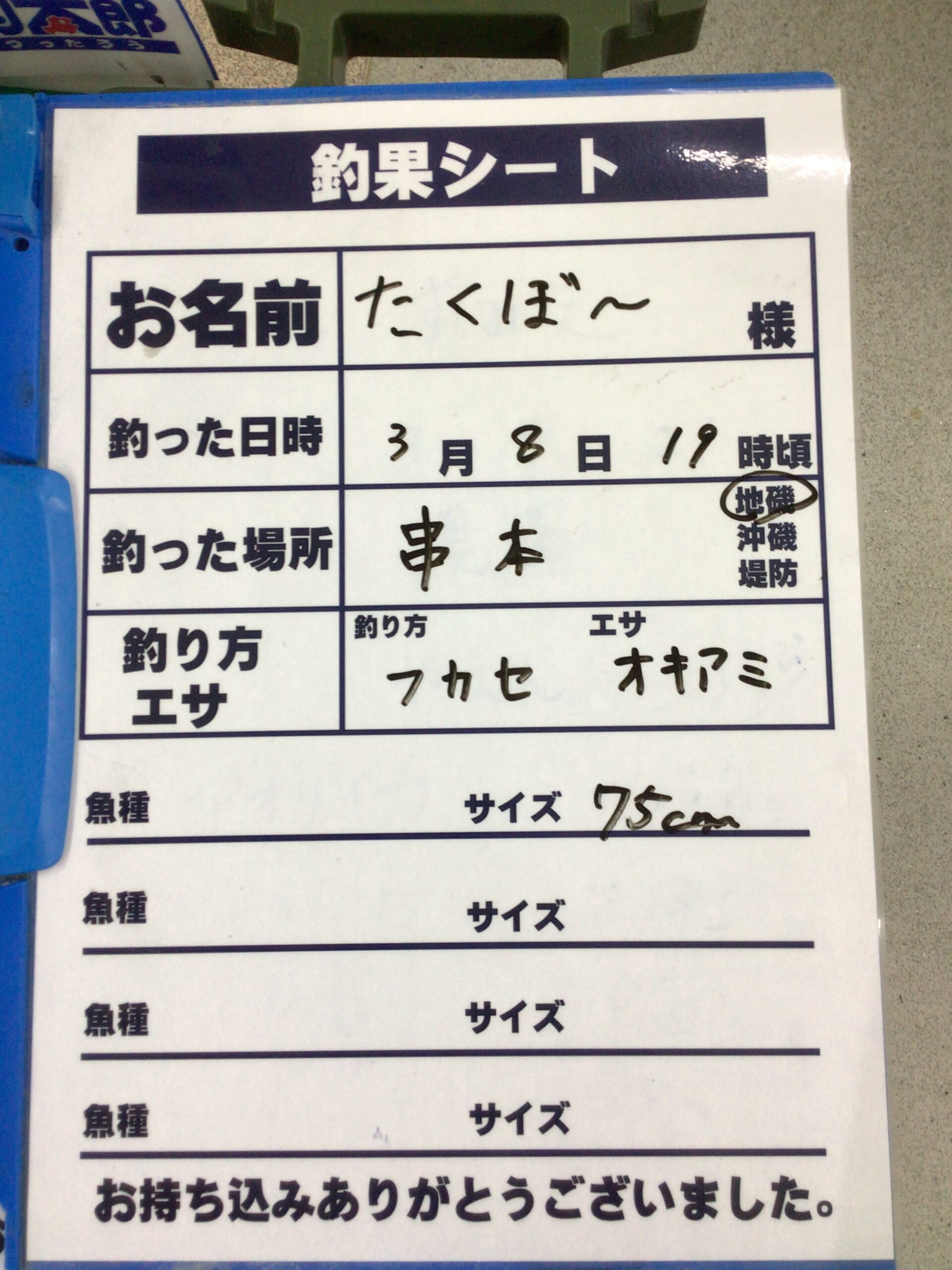 3/8 串本地磯にて真鯛の持ち込み釣果。