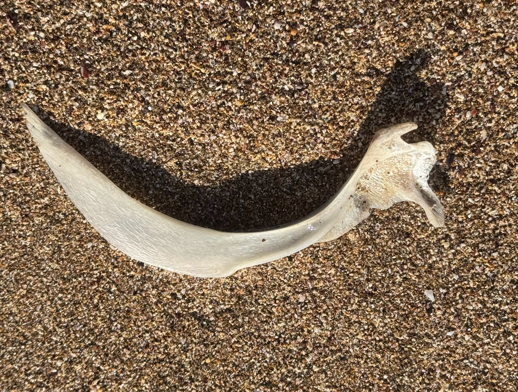 この骨が漂着していたのは、エイの死骸が波に運ばれて、分解の過程で吻だけが残ったためかもしれません。