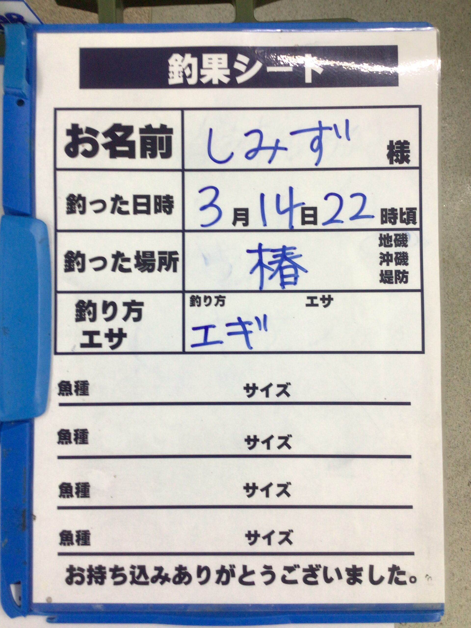 3/14 椿堤防にてアオリイカの持ち込み釣果