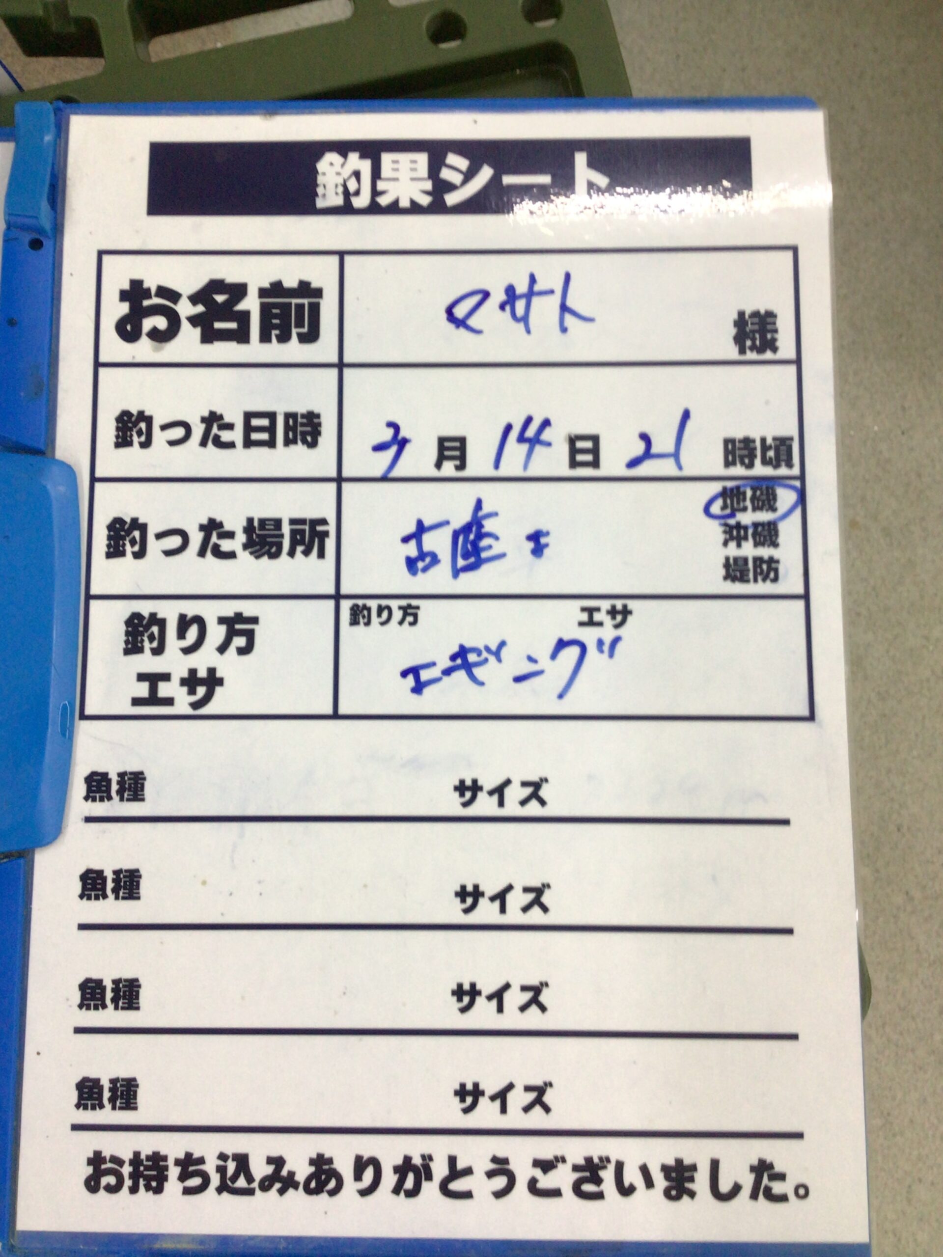 3/14 椿堤防にてアオリイカの持ち込み釣果
