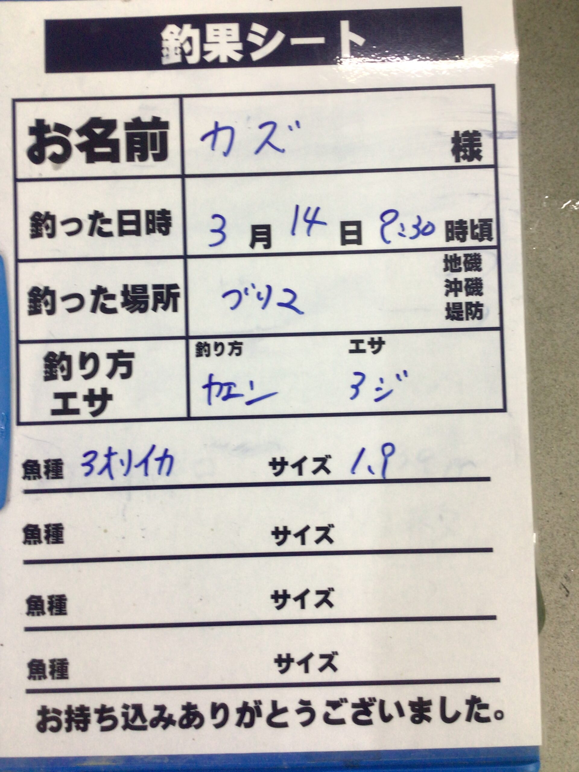3/14 見草地磯にてアオリイカの持ち込み釣果。