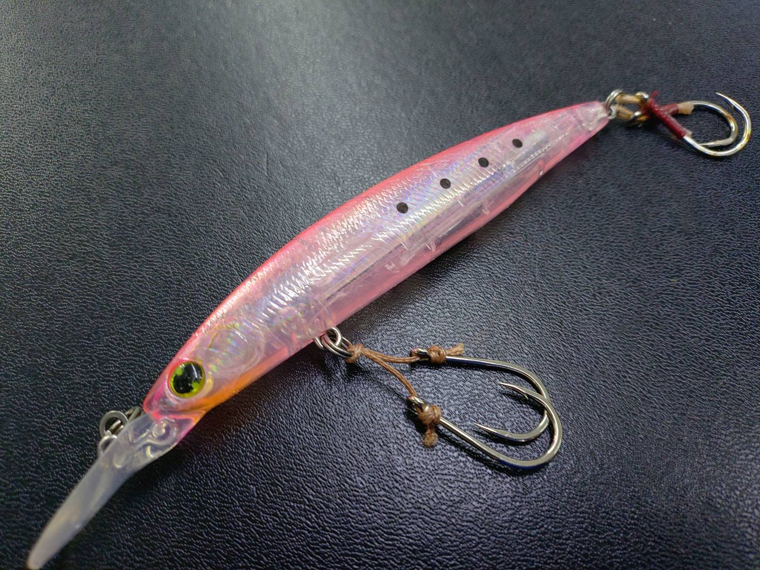 前回のシングルフック交換で無事魚をキャッチできたが、少しルアーが暴れすぎる傾向にある。