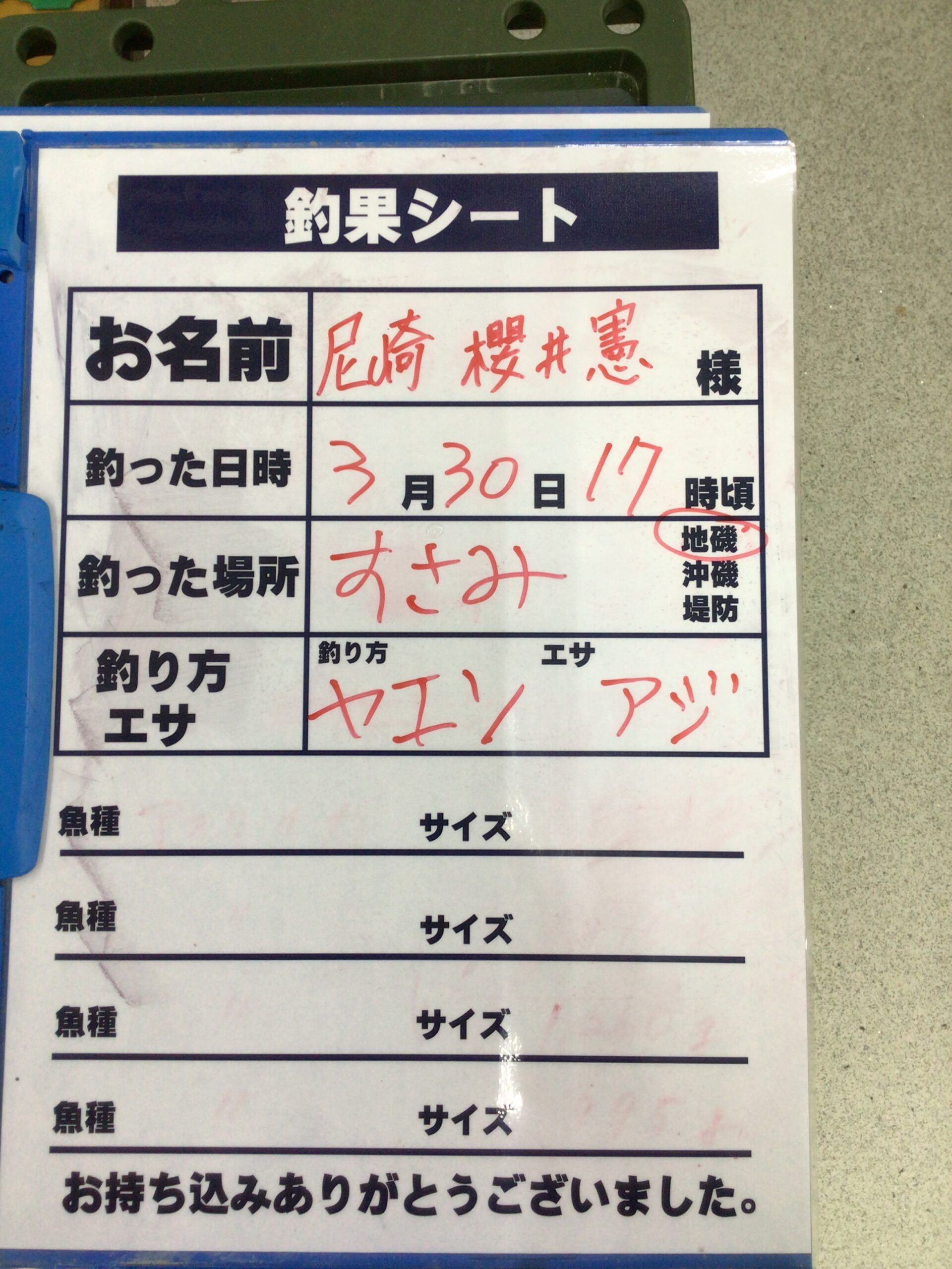 3/30 すさみ地磯にてアオリイカの持ち込み釣果