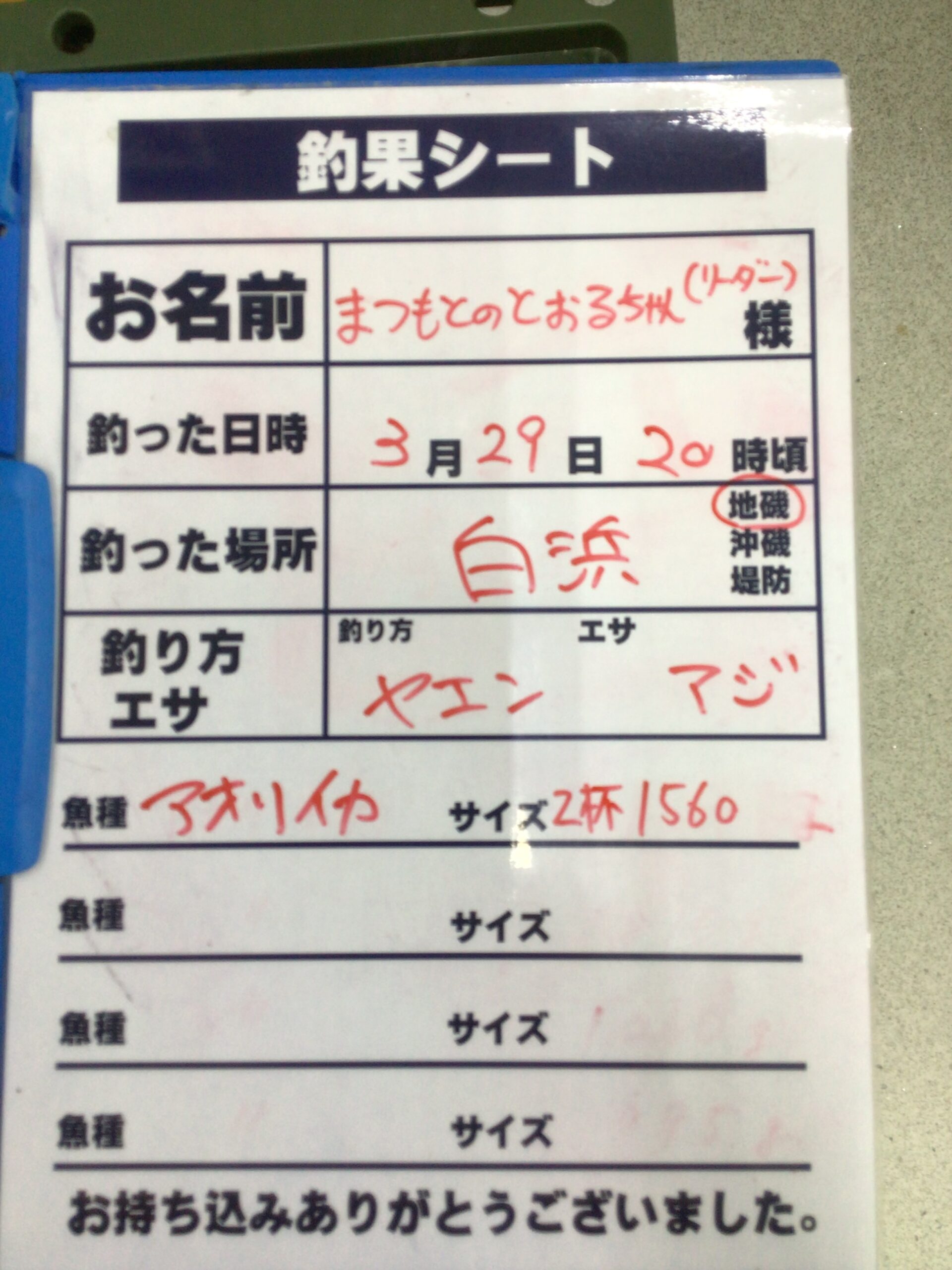 3/30 白浜地磯にてアオリイカの持ち込み釣果