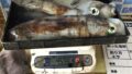 15リットルの海水にアジ10匹入っている。気温と経過時間の海水とアジの状態をアオリイカ釣り人に解説。