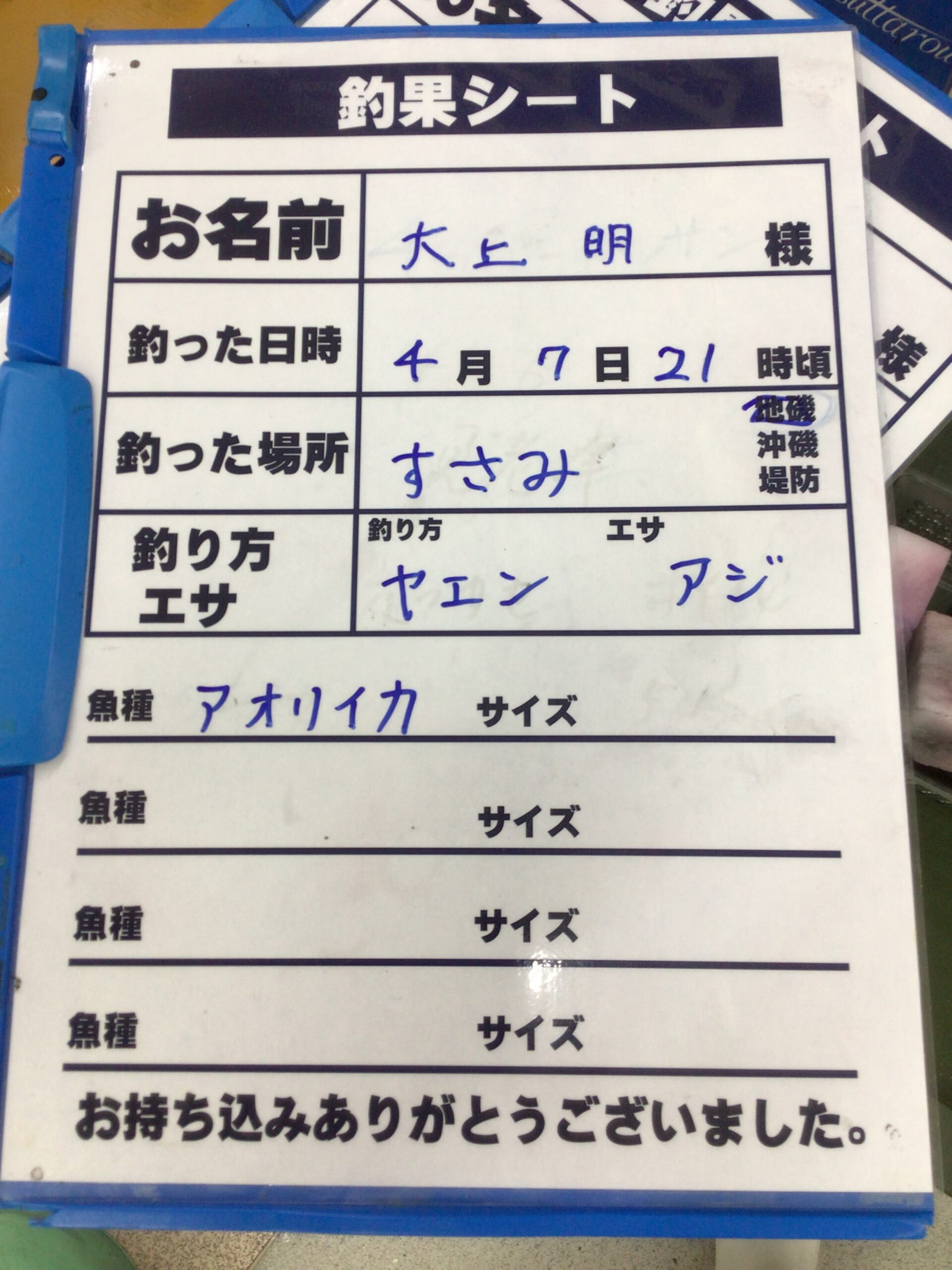 4/7 アオリイカ2310g 計2杯4175g すさみ地磯にて ヤエン