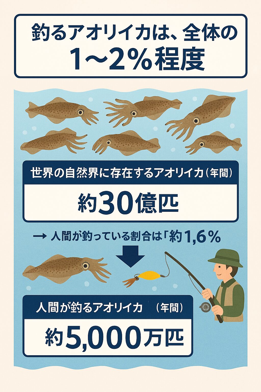 • 私たちが釣っているアオリイカは、全体のわずか1〜2%程度