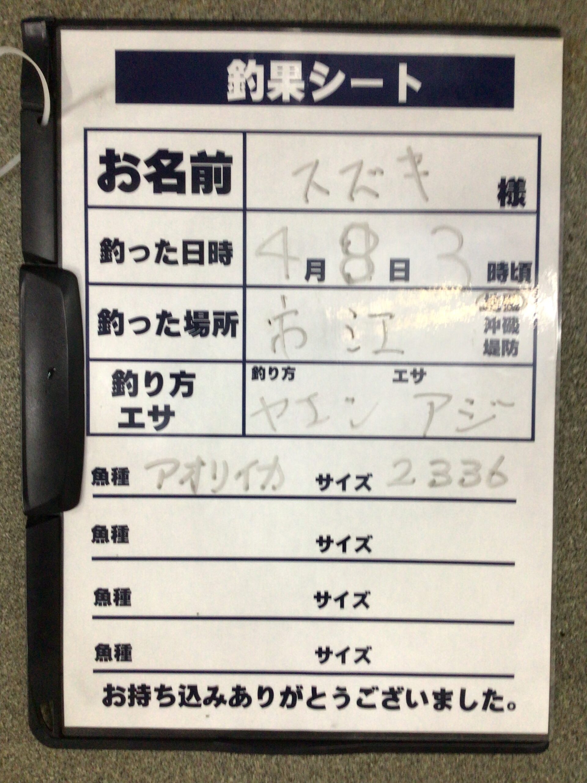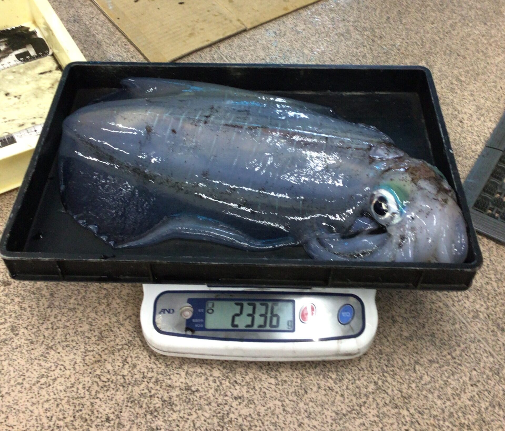 4/8 アオリイカの釣果2336g 市江地磯、ヤエン釣りにて