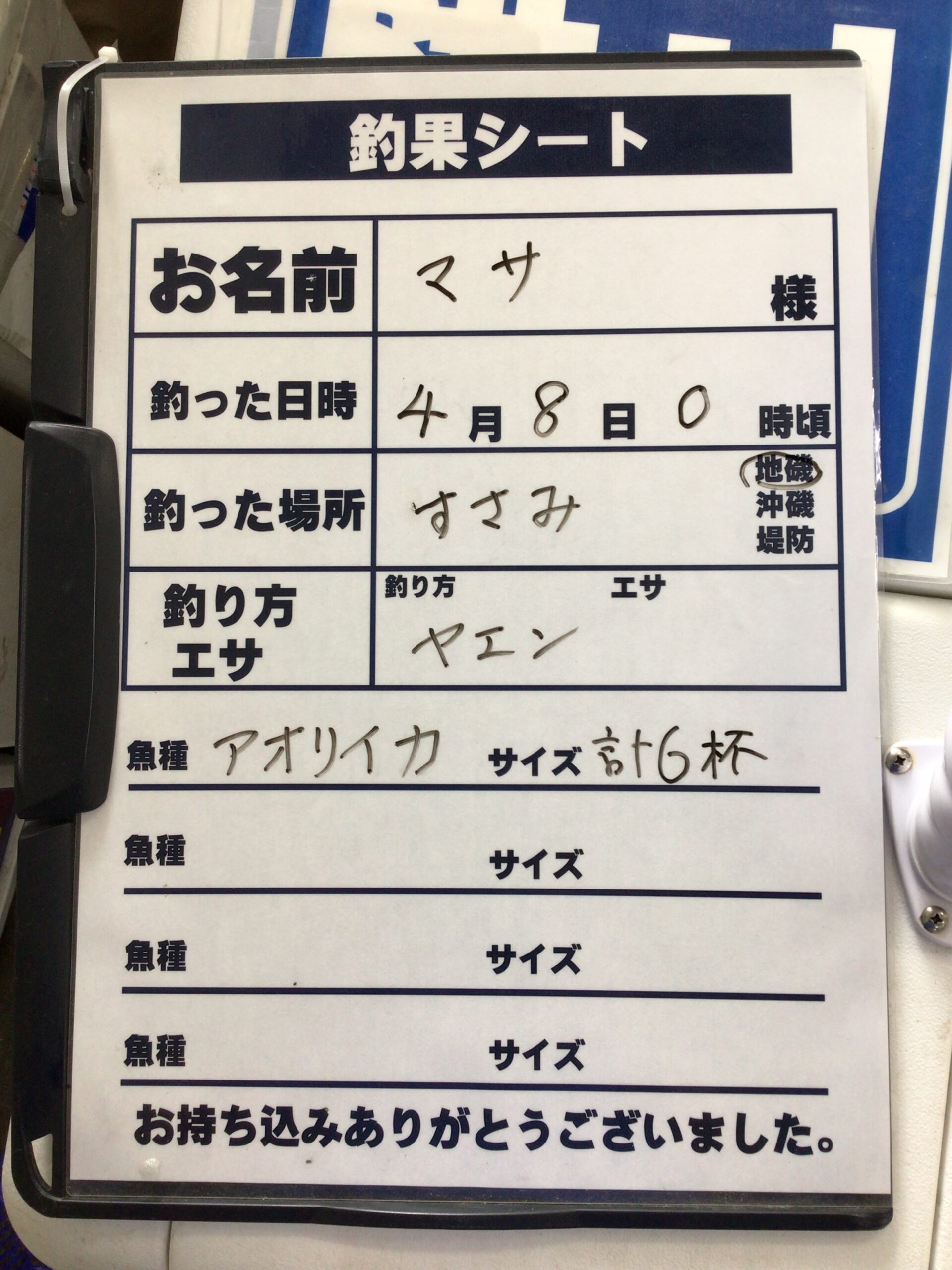 4/8 アオリイカの釣果2006g 計6杯約6.5キロ すさみ地磯、ヤエン釣りにて