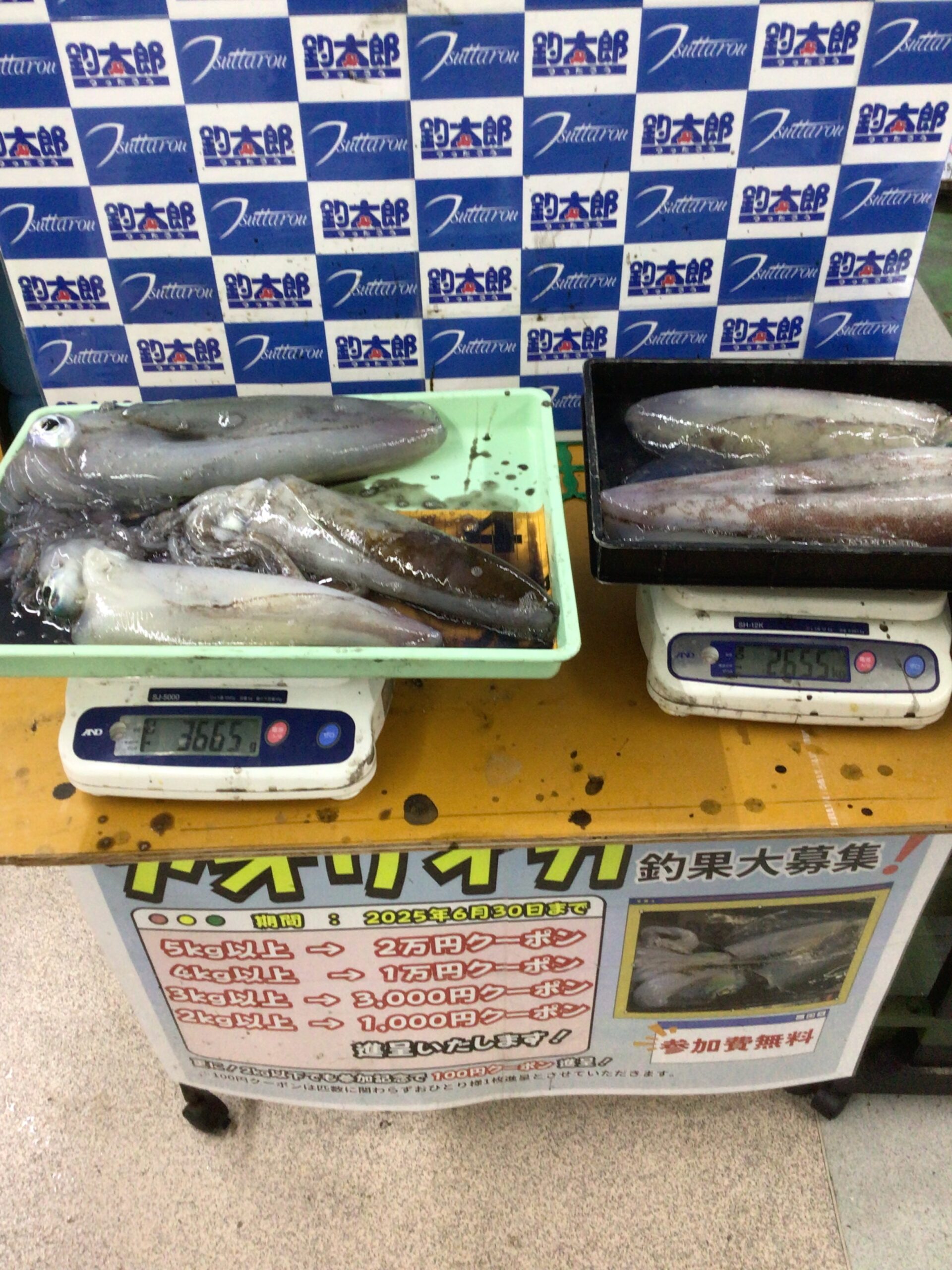 4/9 アオリイカ最大1675g 計約6000g釣果 日置にて ヤエン