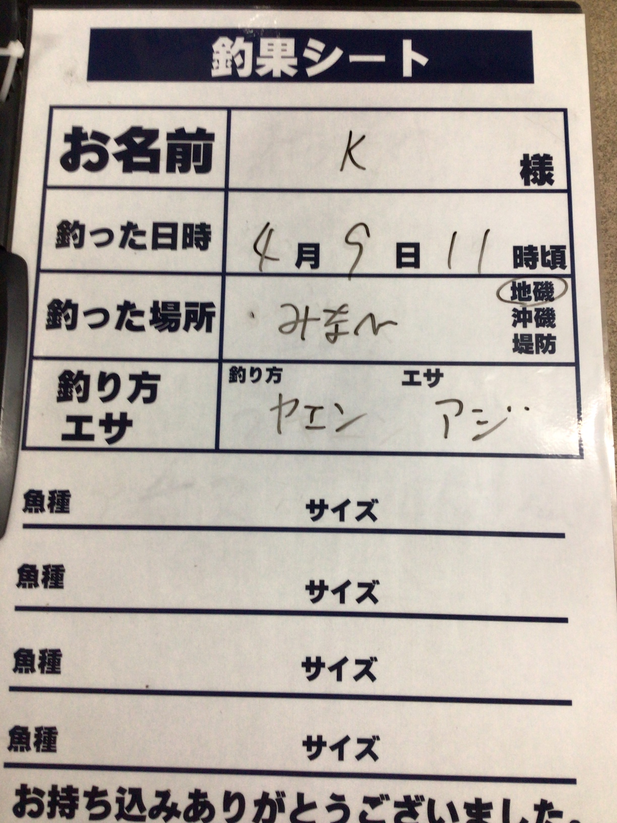 4/9(水)白浜地磯似てアオリイカ3杯計4190g他 ヤエンにて