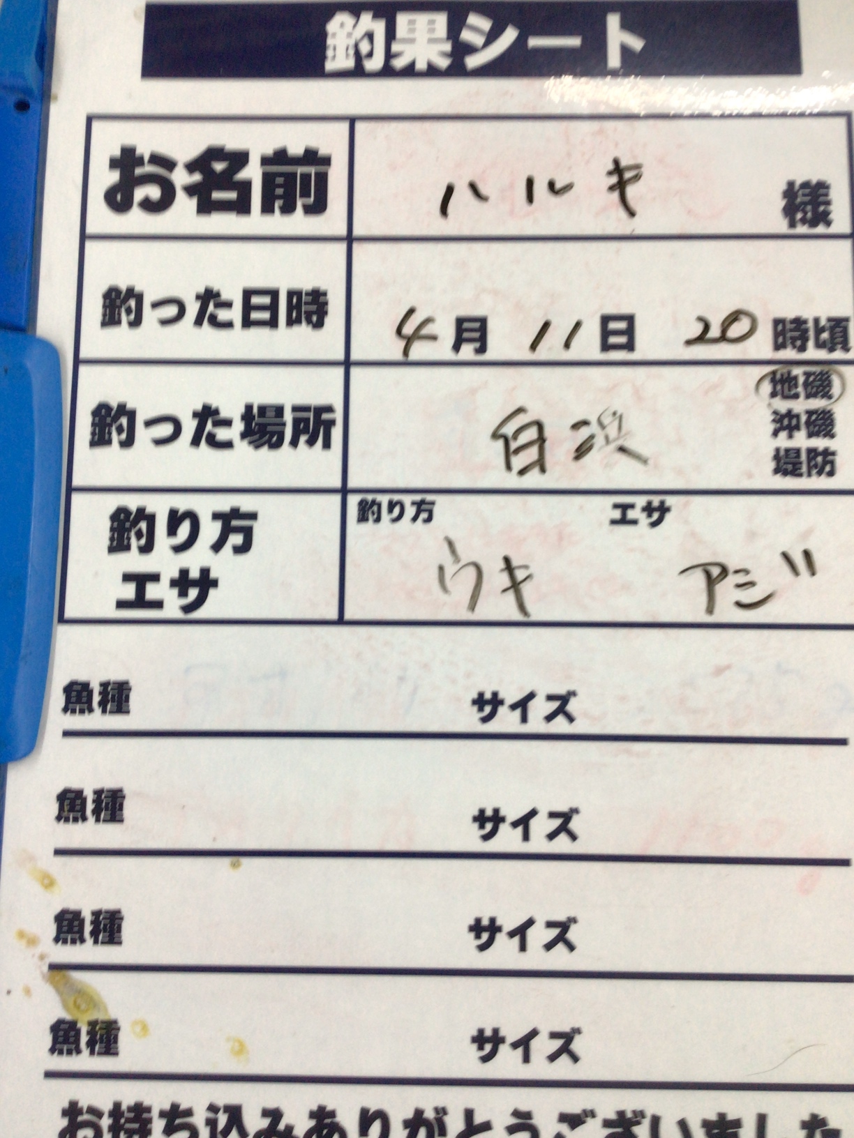 4/11(金)  白浜地磯にてアオリイカ1995g ウキ釣りにて
