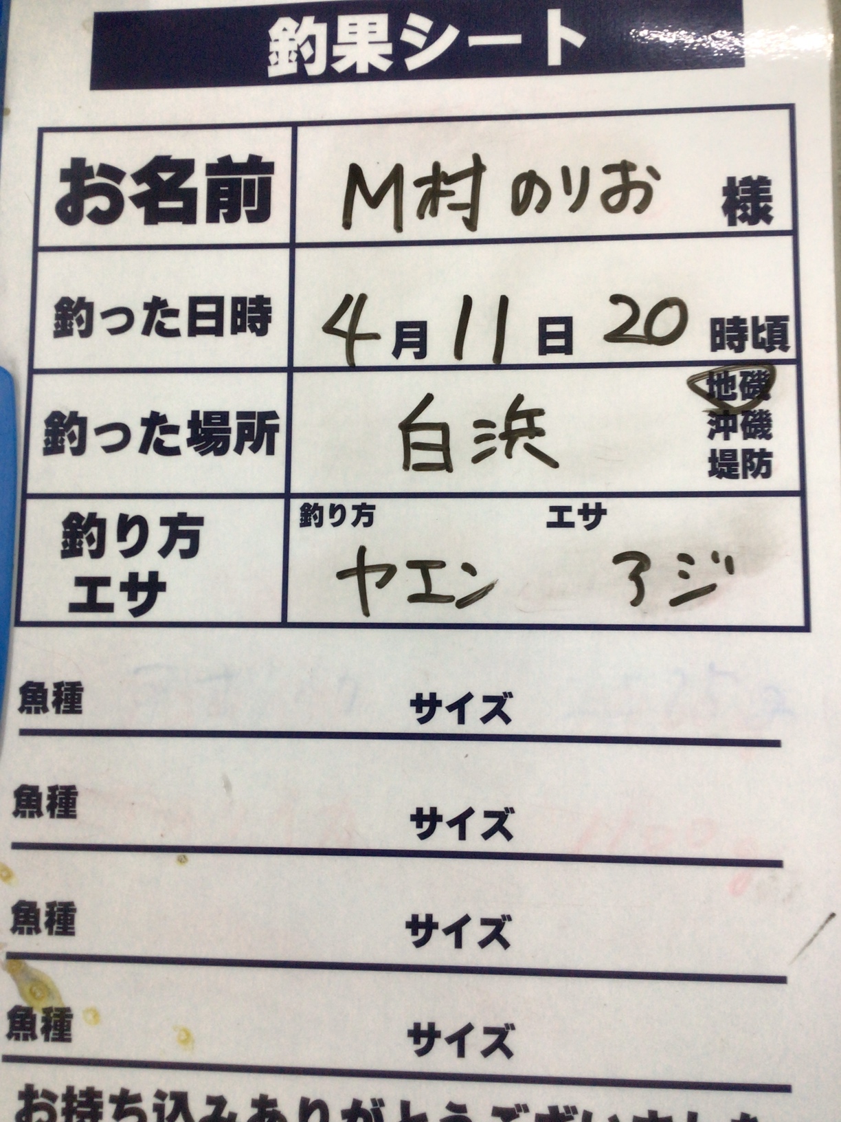 4/11 白浜地磯にてアオリイカ釣果 計4杯 7㎏